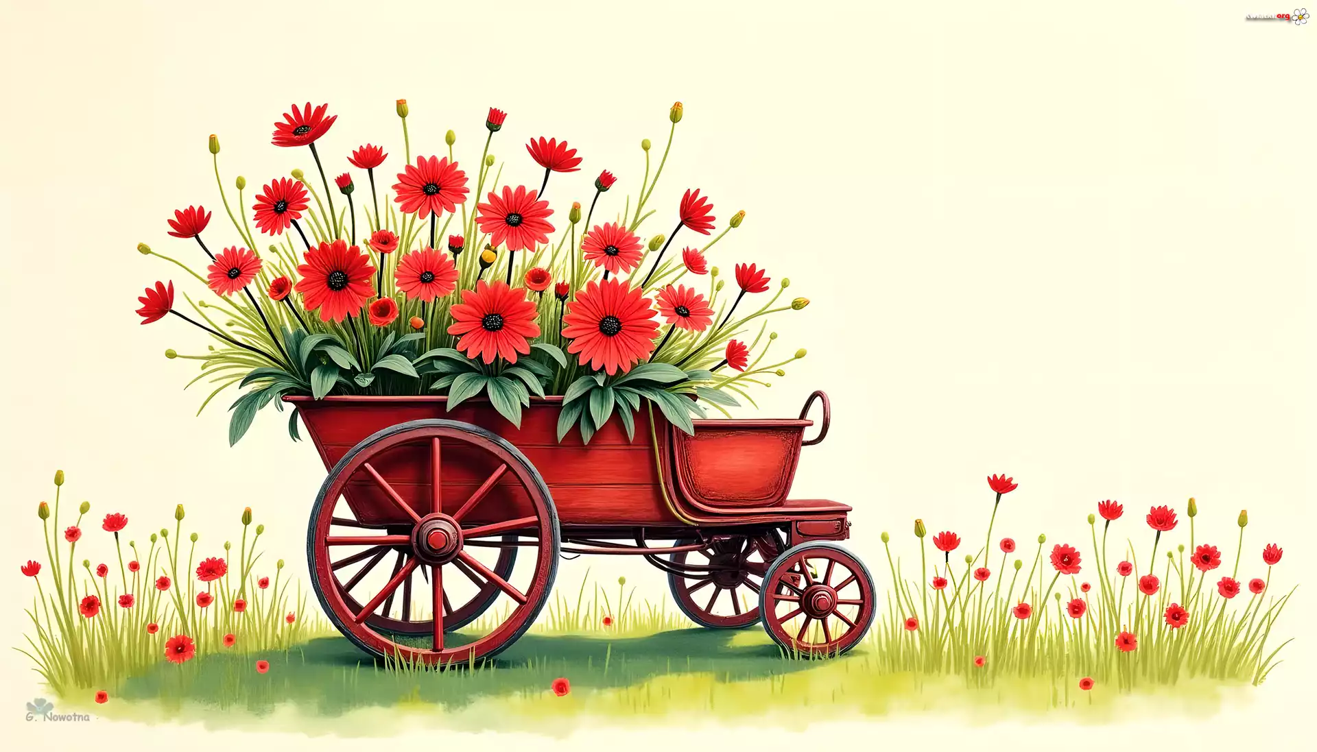 Czerwone, Kwiaty, Wózek, 2D - Zdjęcia