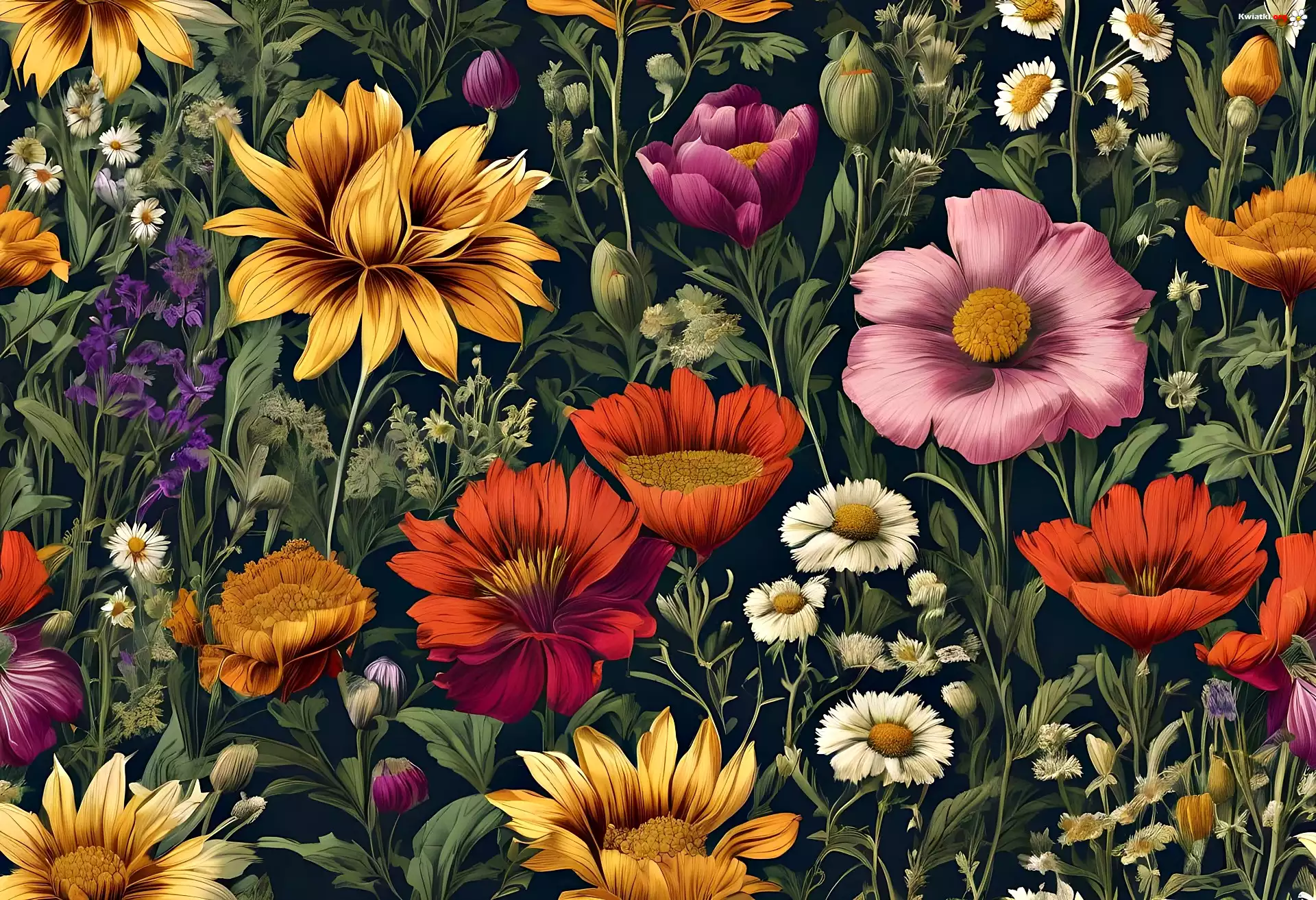 Kolorowe, Kwiaty, Grafika 2D - Zdjęcia