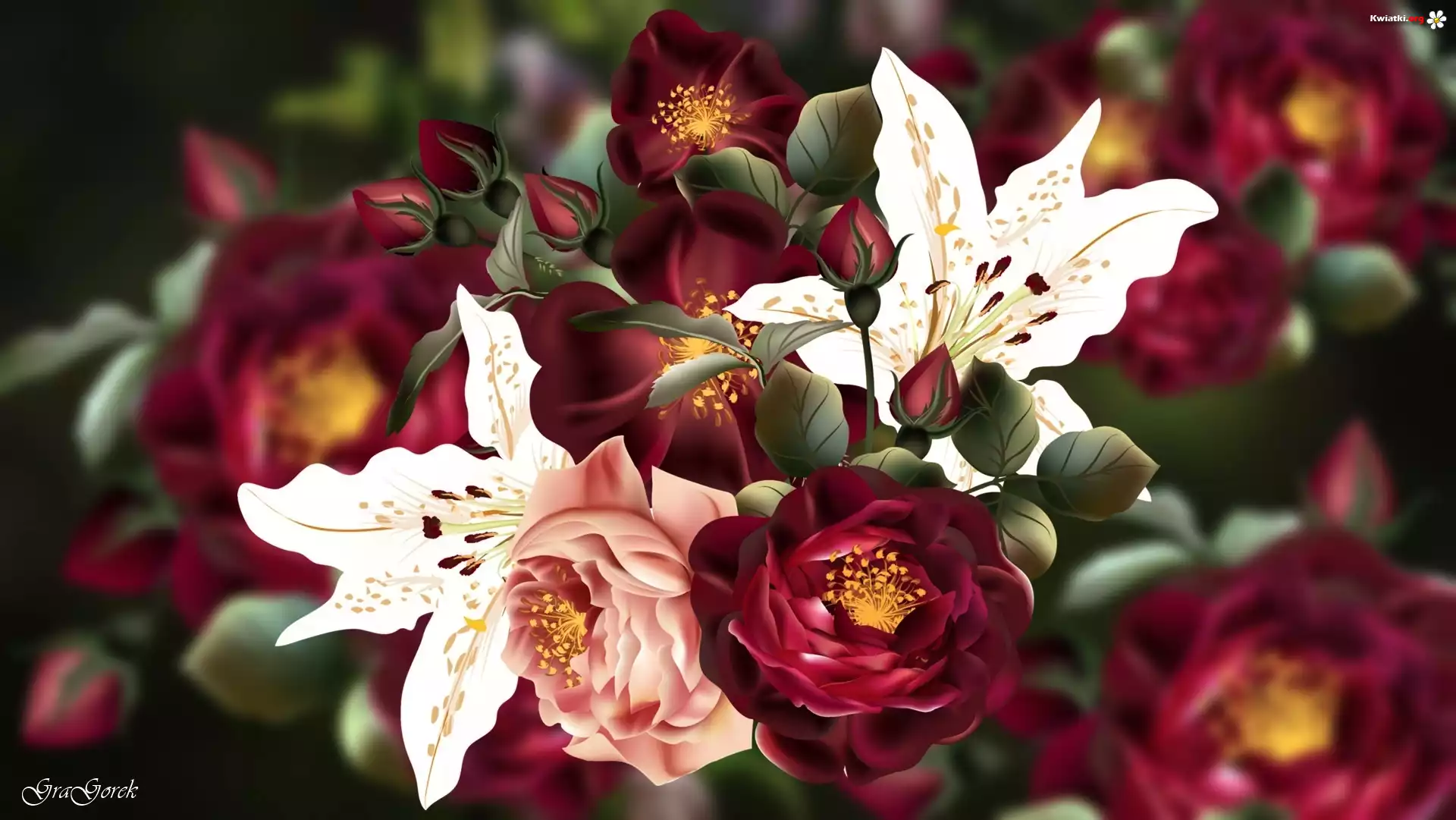 Kwiaty, Róże, Lilie, 2D - Zdjęcia