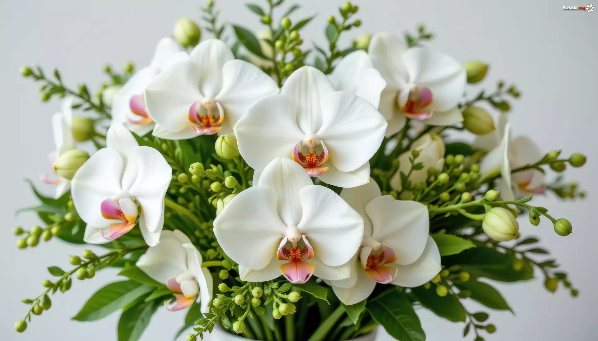 Białe, Storczyki, Liście, AI - Zdjęcia