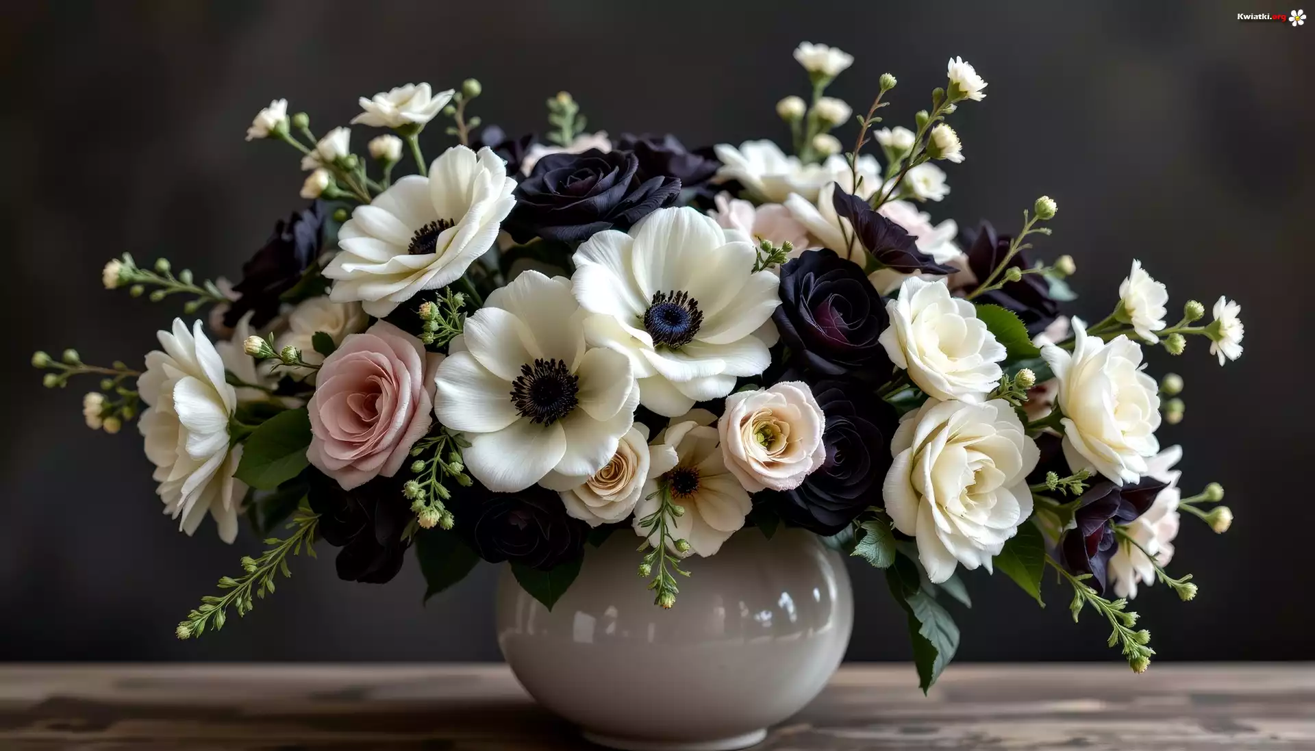 Białe, Kremowe, Czarne, Kwiaty, Bukiet, Wazon, Grafika AI - Zdjęcia