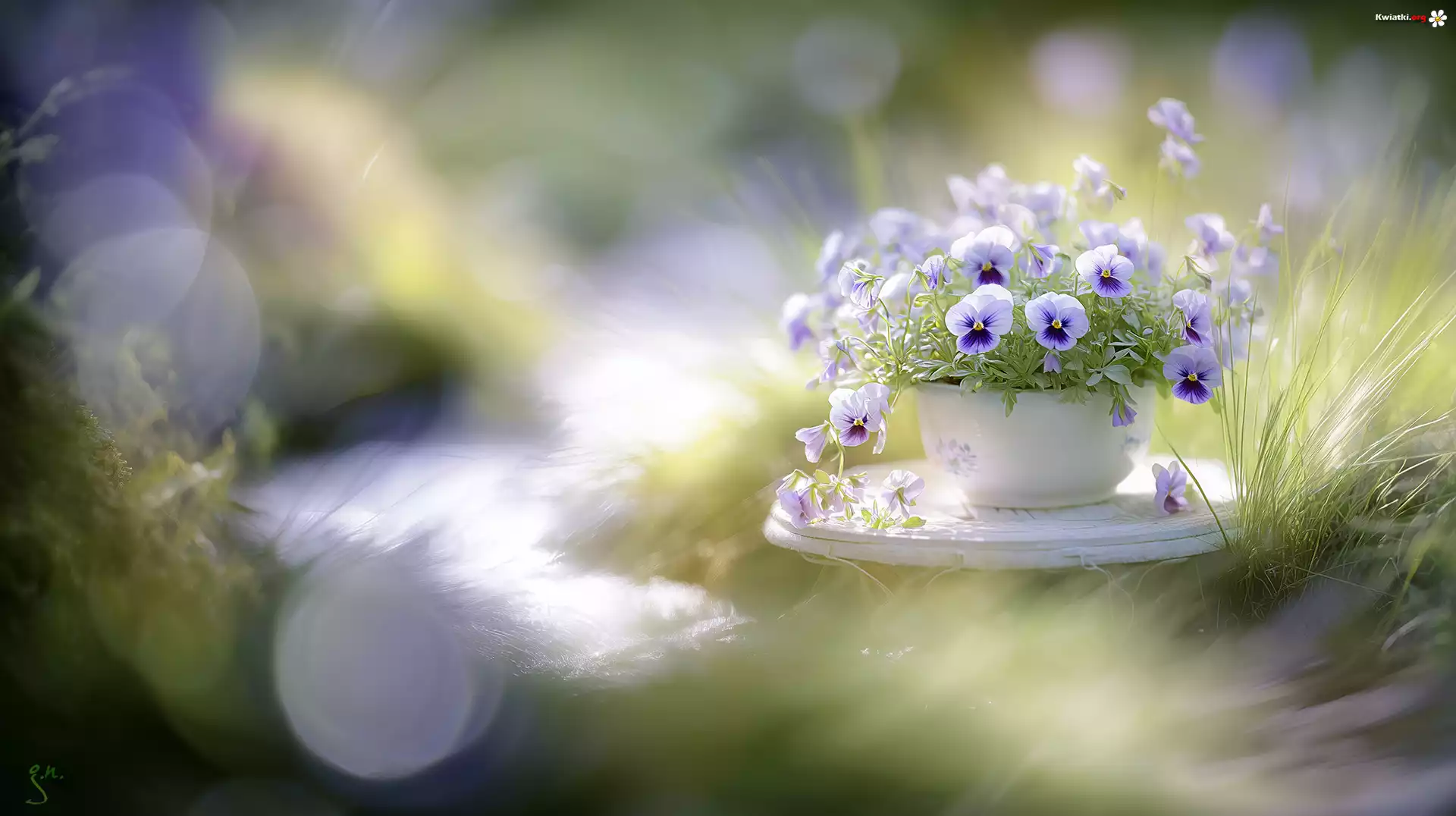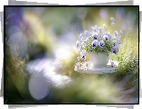 Bratki, Kwiaty, Fioletowe, Biała, Donica, Trawa, Grafika AI - Zdjęcia