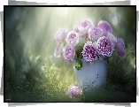 Kwiat Róże, Różowe, Kwiaty, Biała, Donica, Trawa, Grafika AI