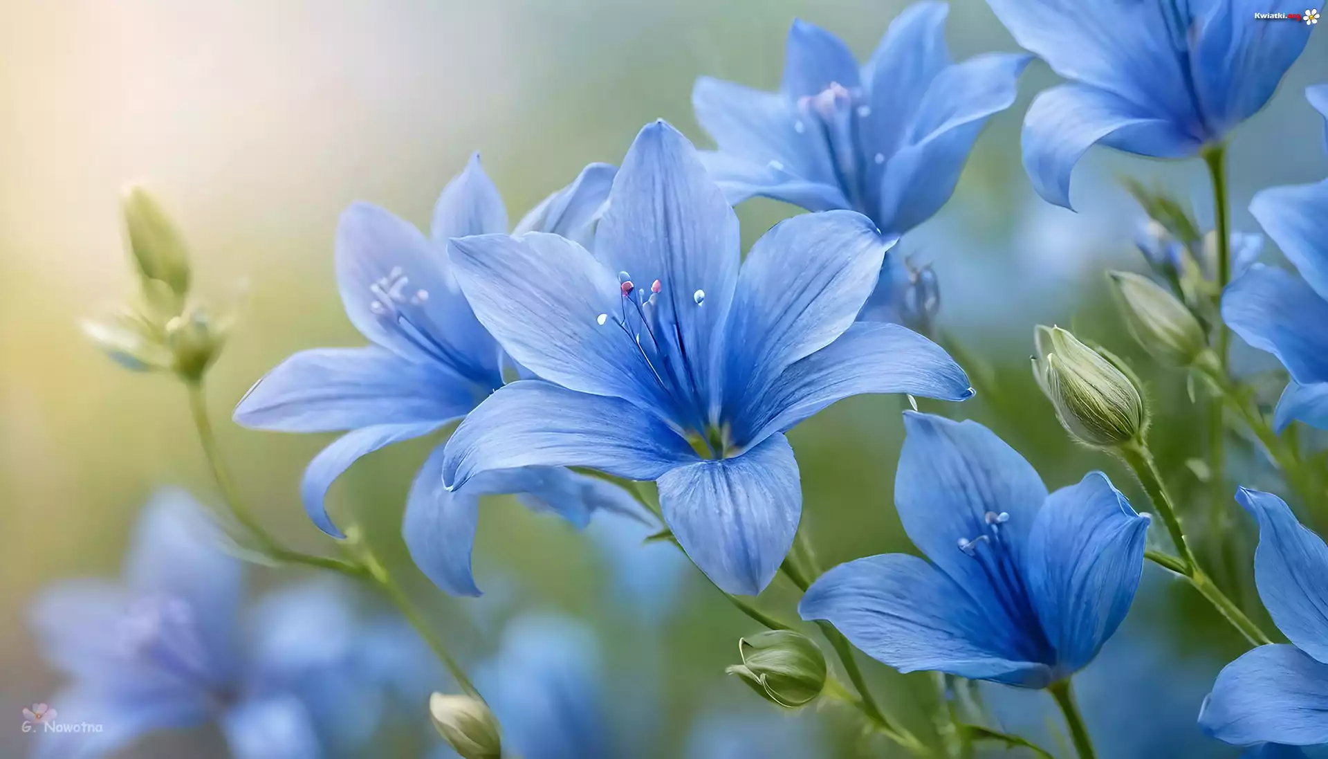 Niebieskie, Kwiaty, Grafika AI - Zdjęcia