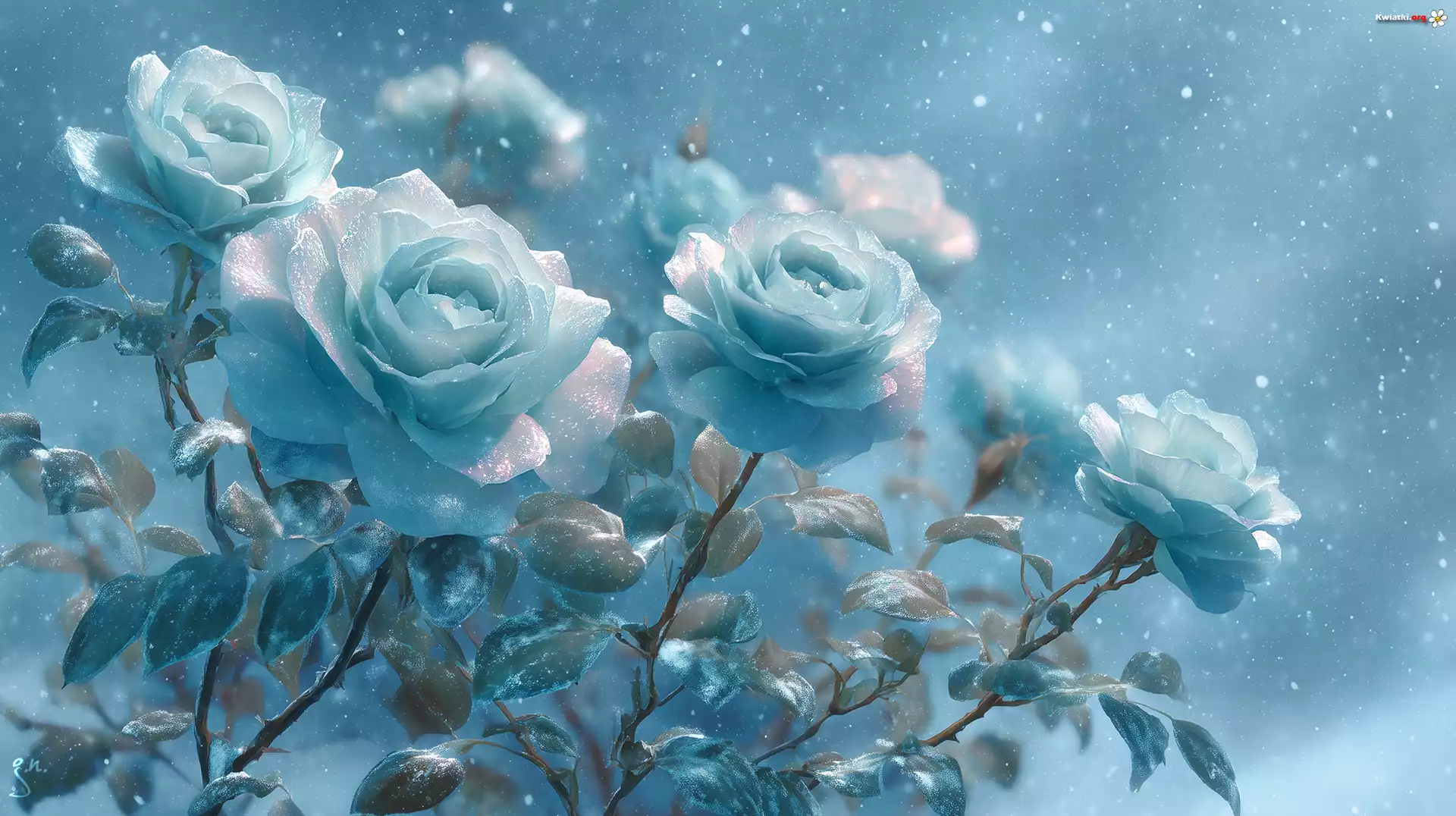 Niebieskie, Róże, Grafika AI - Zdjęcia