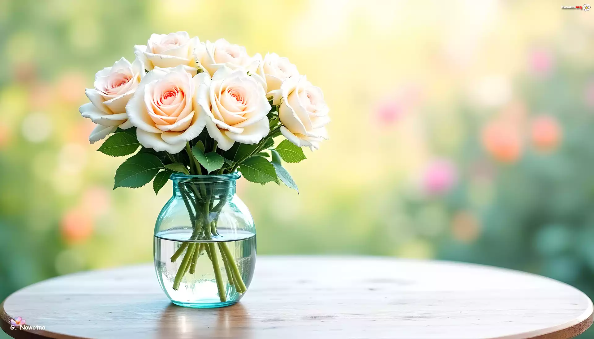 Kremowo-różowe, Róże, Szklany, Wazon, Stolik, Grafika AI - Zdjęcia