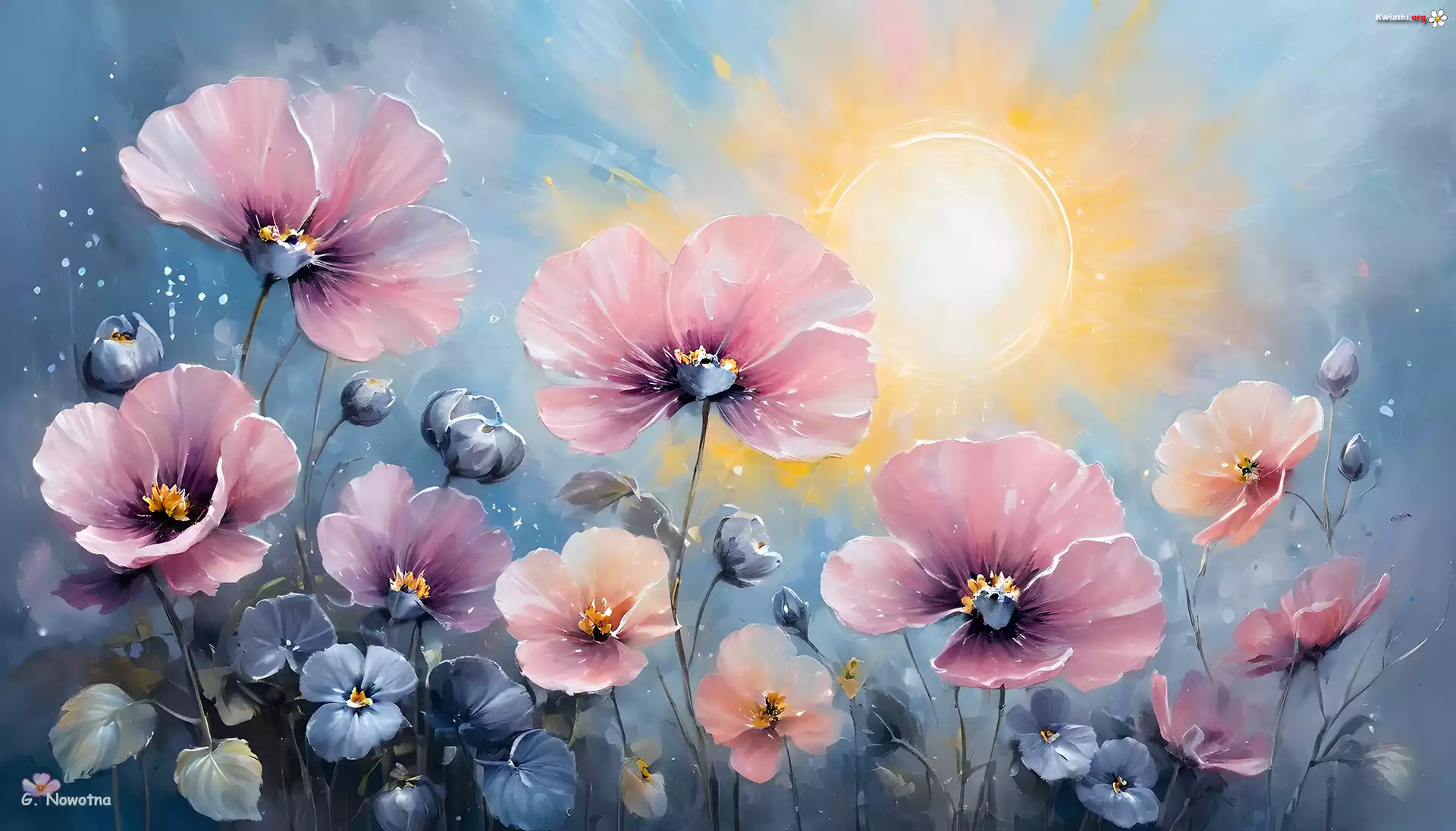 Różowe, Kwiaty, Grafika AI - Zdjęcia