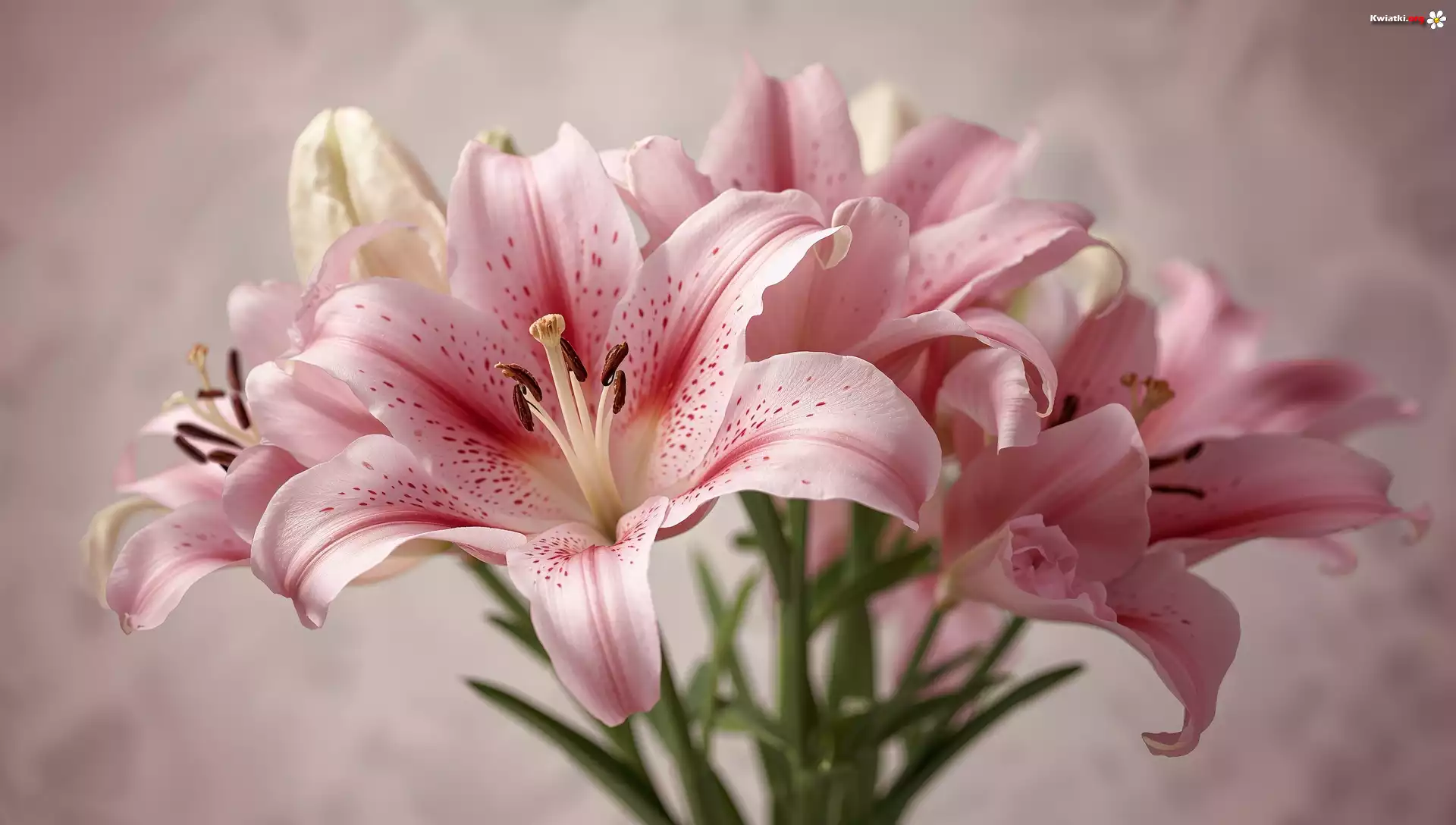 Kwiat Różowe, Lilie, Zbliżenie, AI