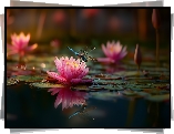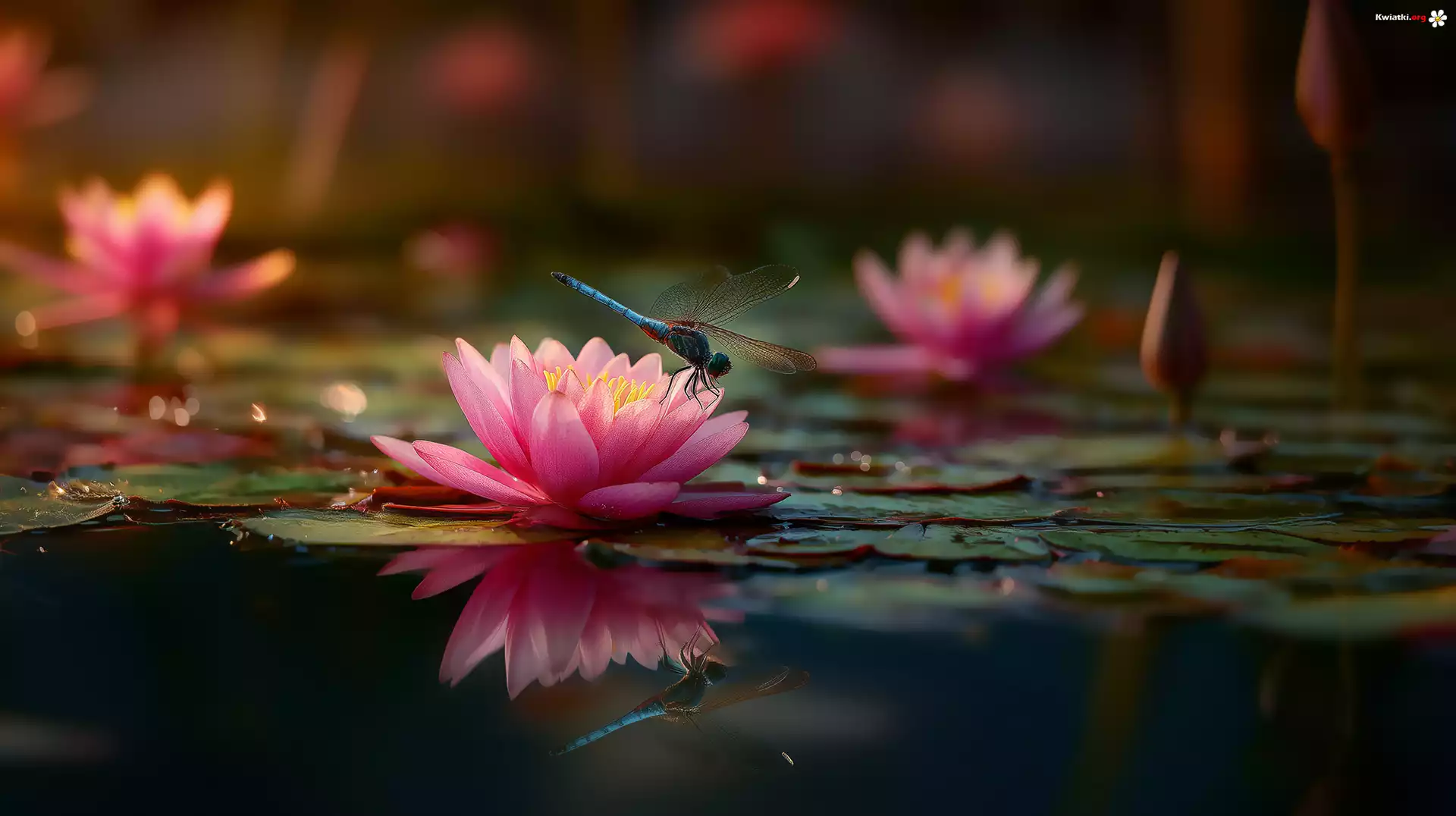 Kwiat Lilia wodna, Różowy, Kwiat, Ważka, Owad, Grafika AI