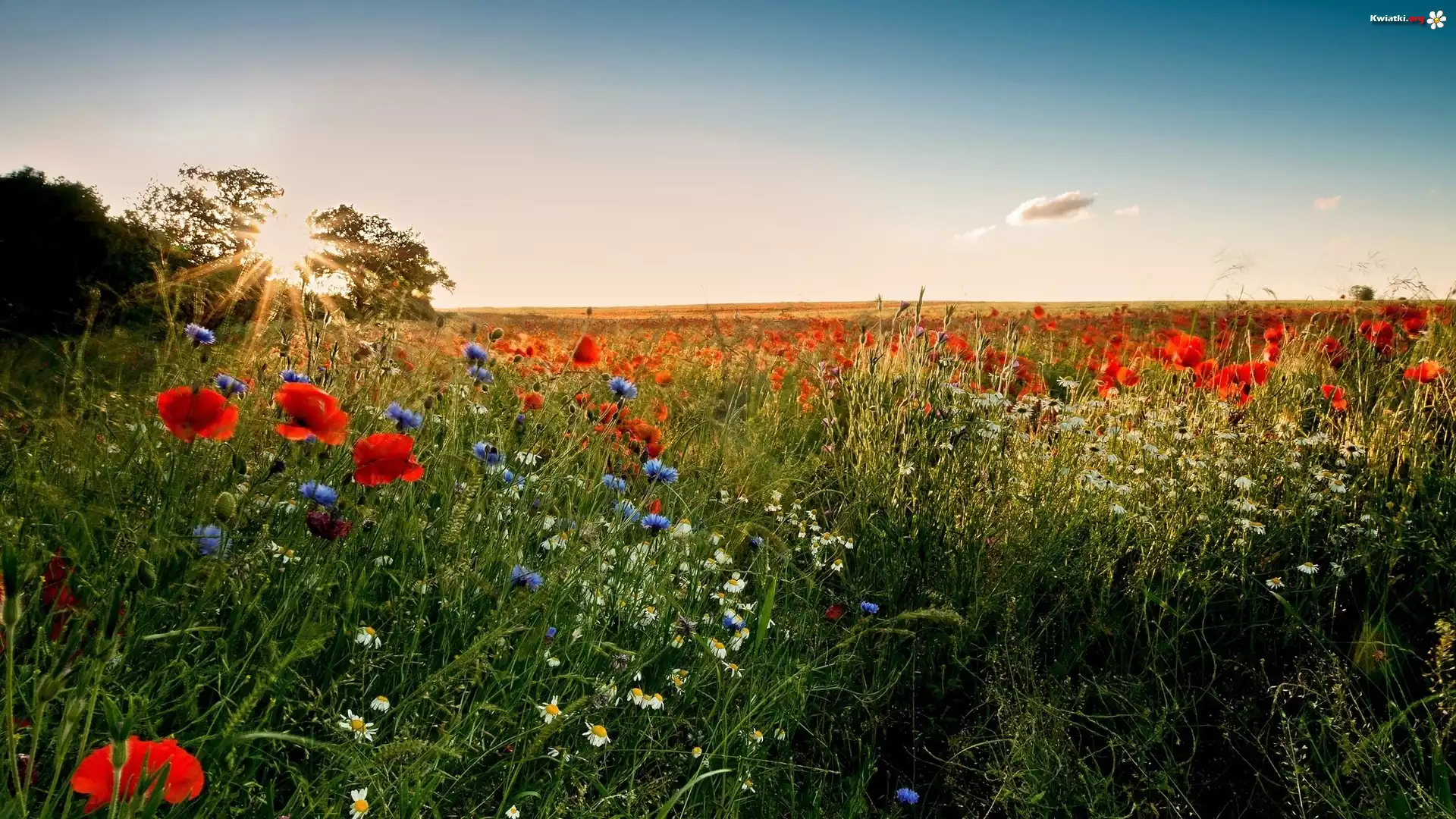 Kwiat Łąka, Maki, Chabry, Rumianki, Promienie, Słońca