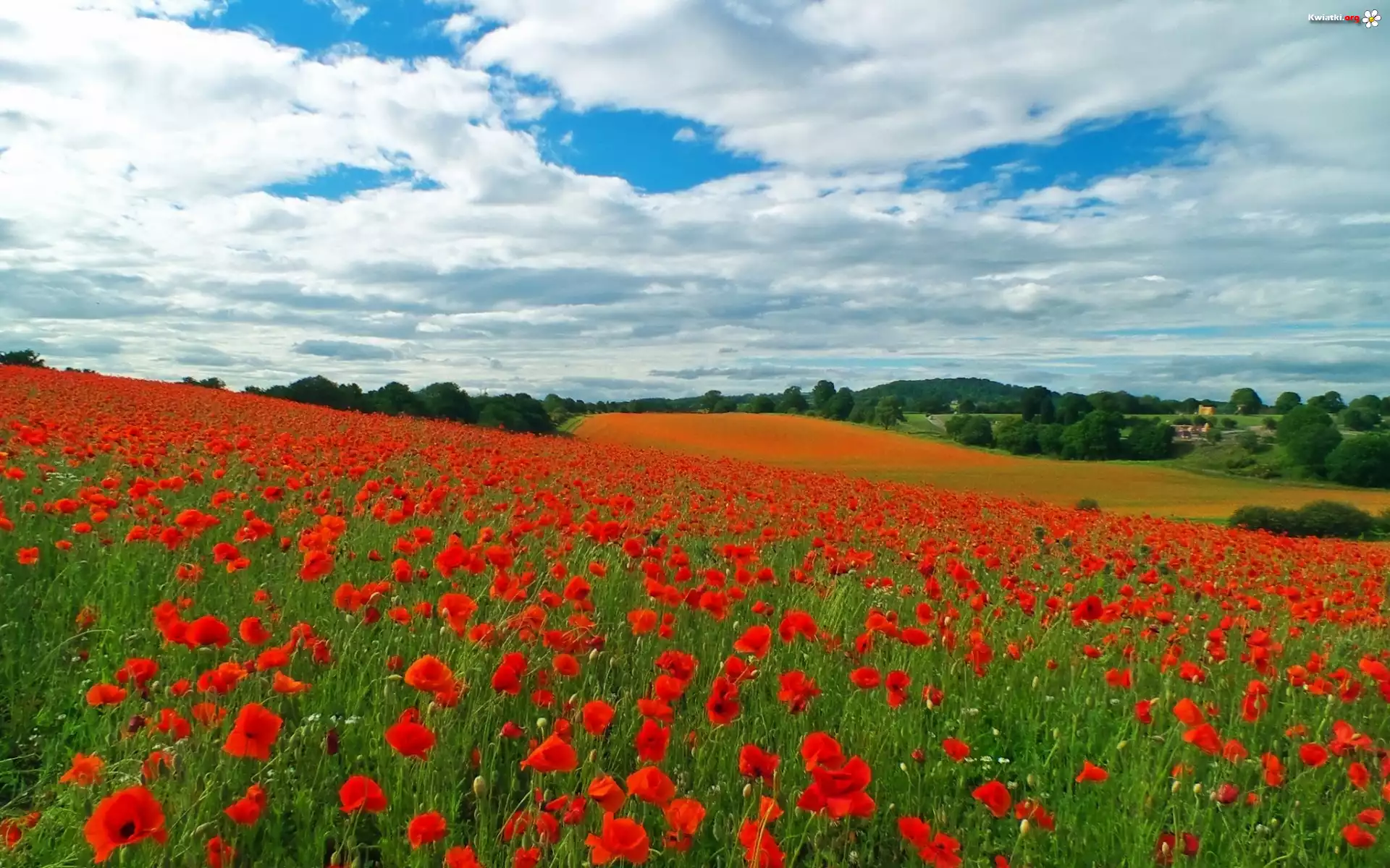 Kwiat Łąka, Maki, Pola, Lasy, Chmury, Wiosna