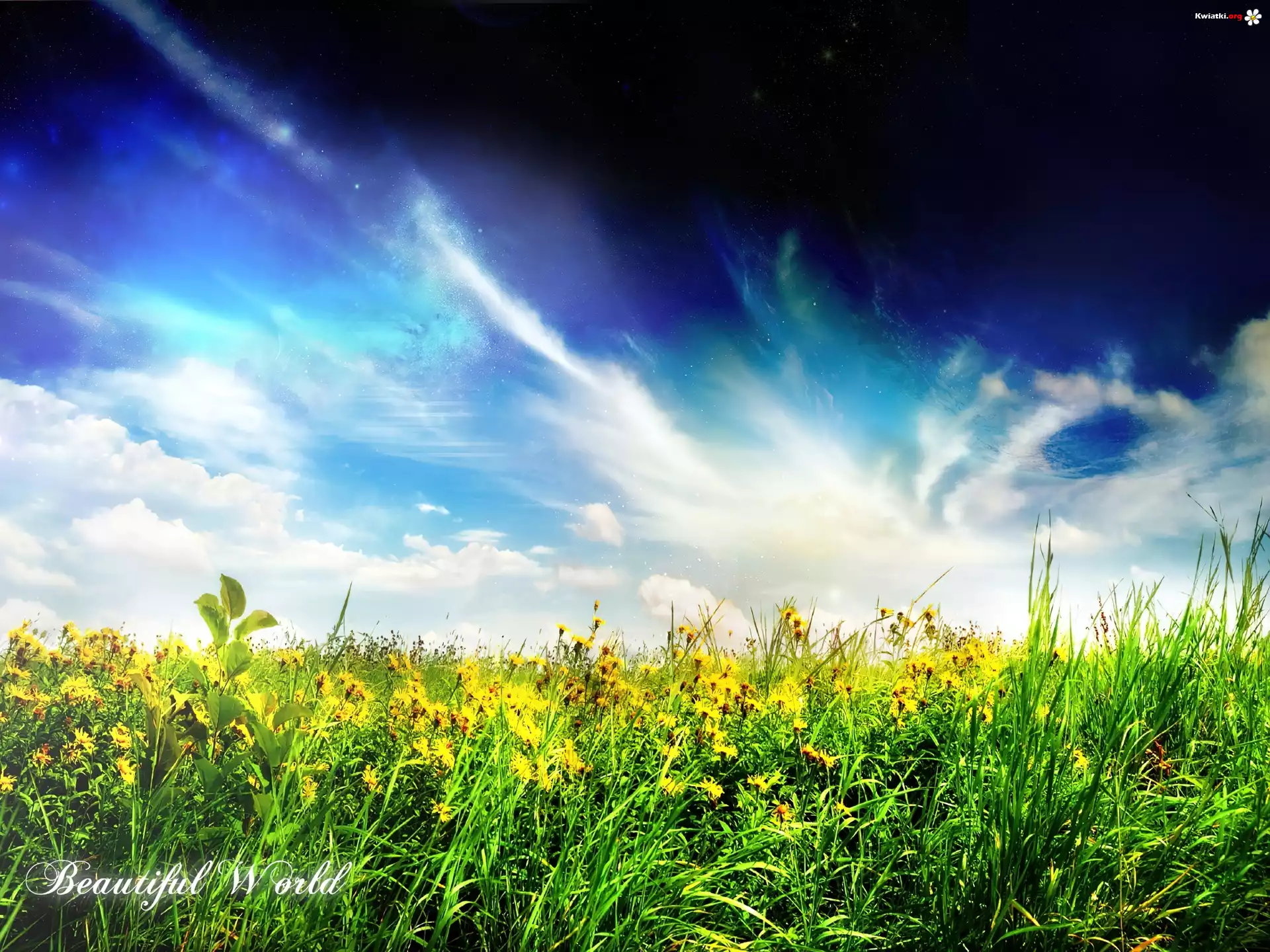 Niebo, Łąka, Kwiatki - Zdjęcia