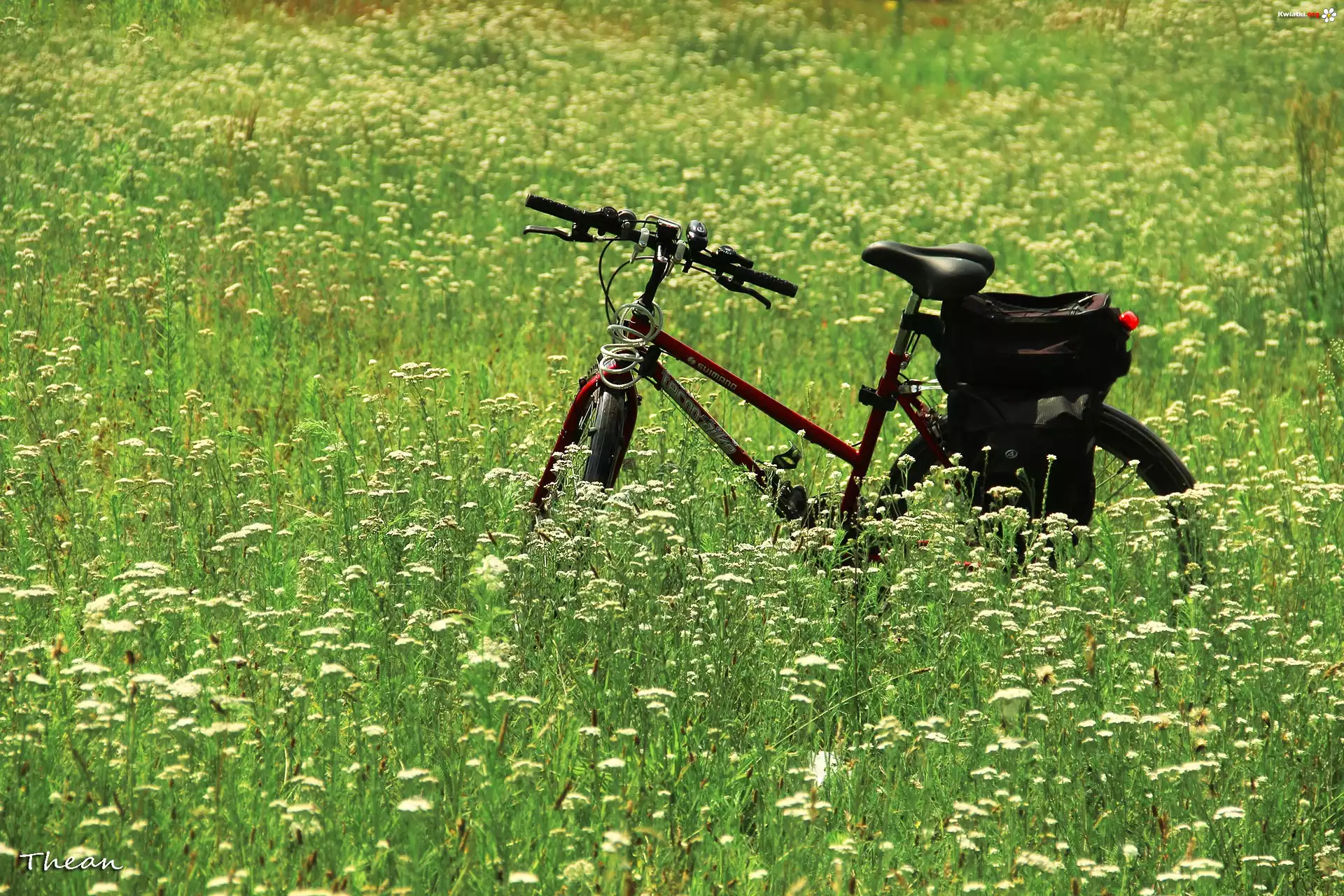 Rower, Łąka, Kwiaty - Zdjęcia