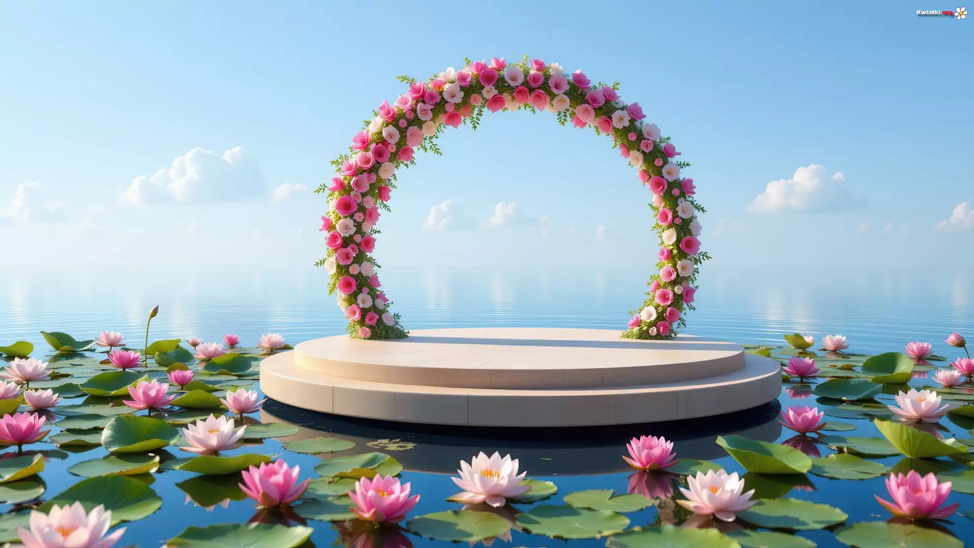 Podium, Morze, Kwiaty, Kwiatowy, Łuk, Lilie wodne, Al - Zdjęcia