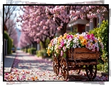 Wóz, Kolorowe, Kwiaty, Aleja, Kwitnące, Drzewa - Zdjęcia