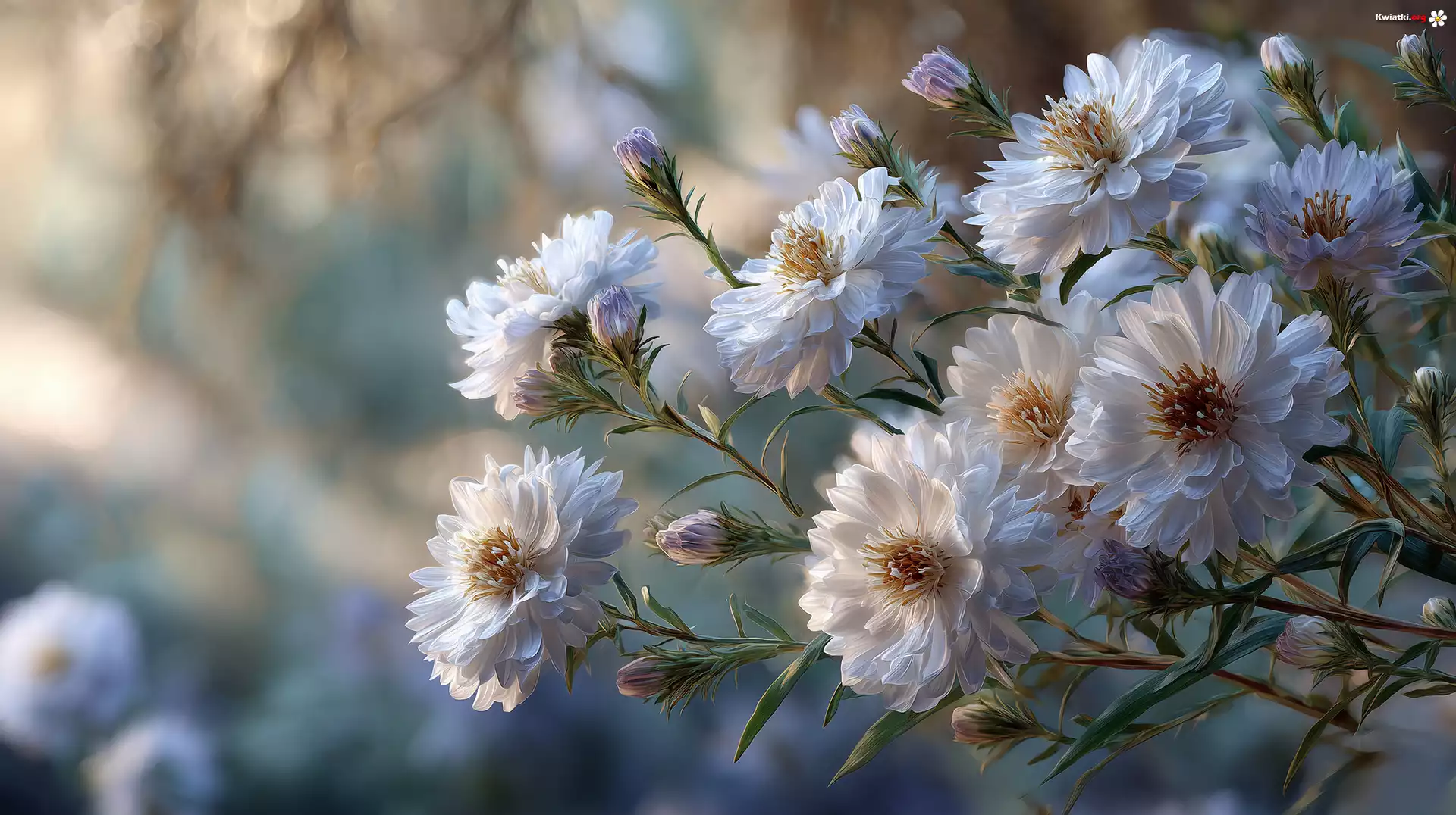 Białe, Astry, Kwiaty, Grafika AI - Zdjęcia