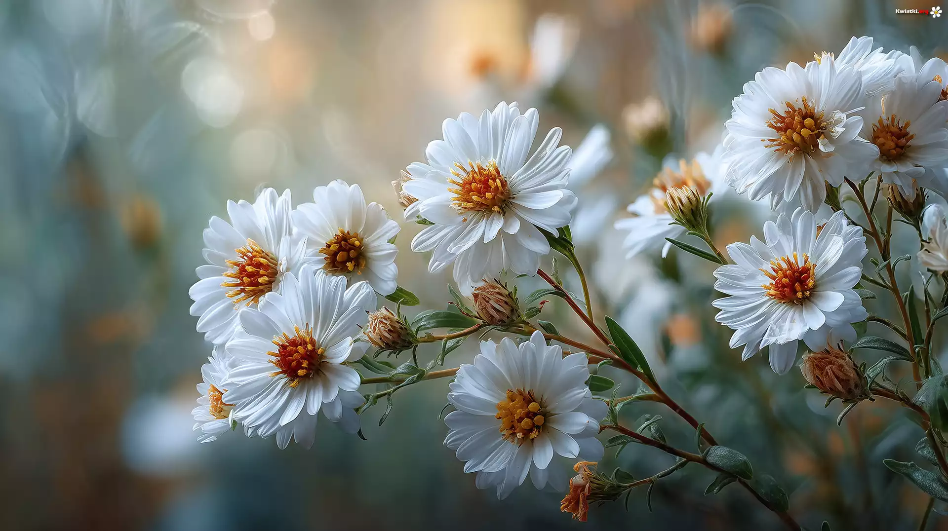 Białe, Astry, Kwiaty, Grafika, AI - Zdjęcia