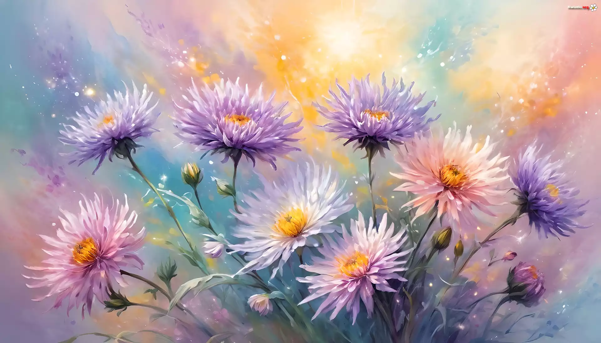 Kolorowe, Astry, Kwiaty, Grafika AI - Zdjęcia