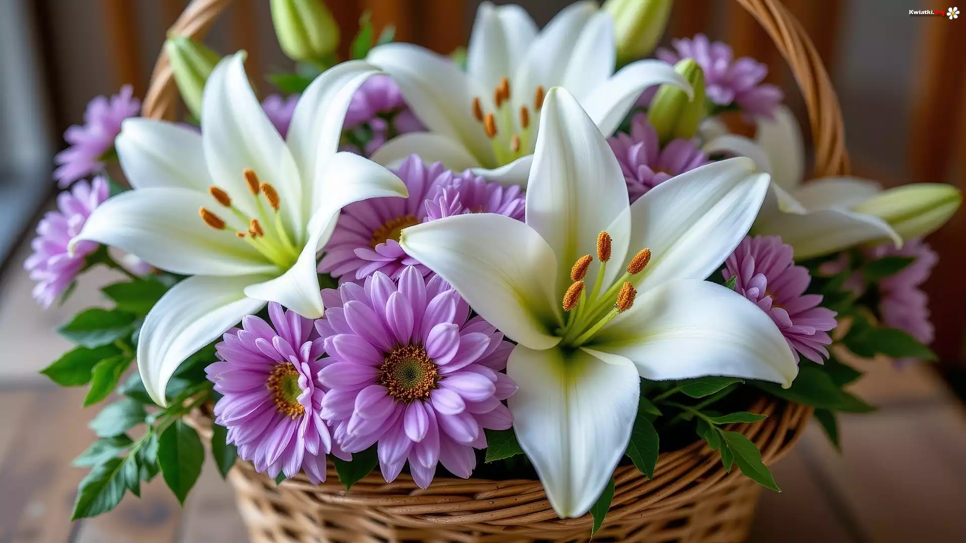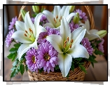 Białe, Lilie, Fioletowe, Astry, Kosz, Kwiaty - Zdjęcia