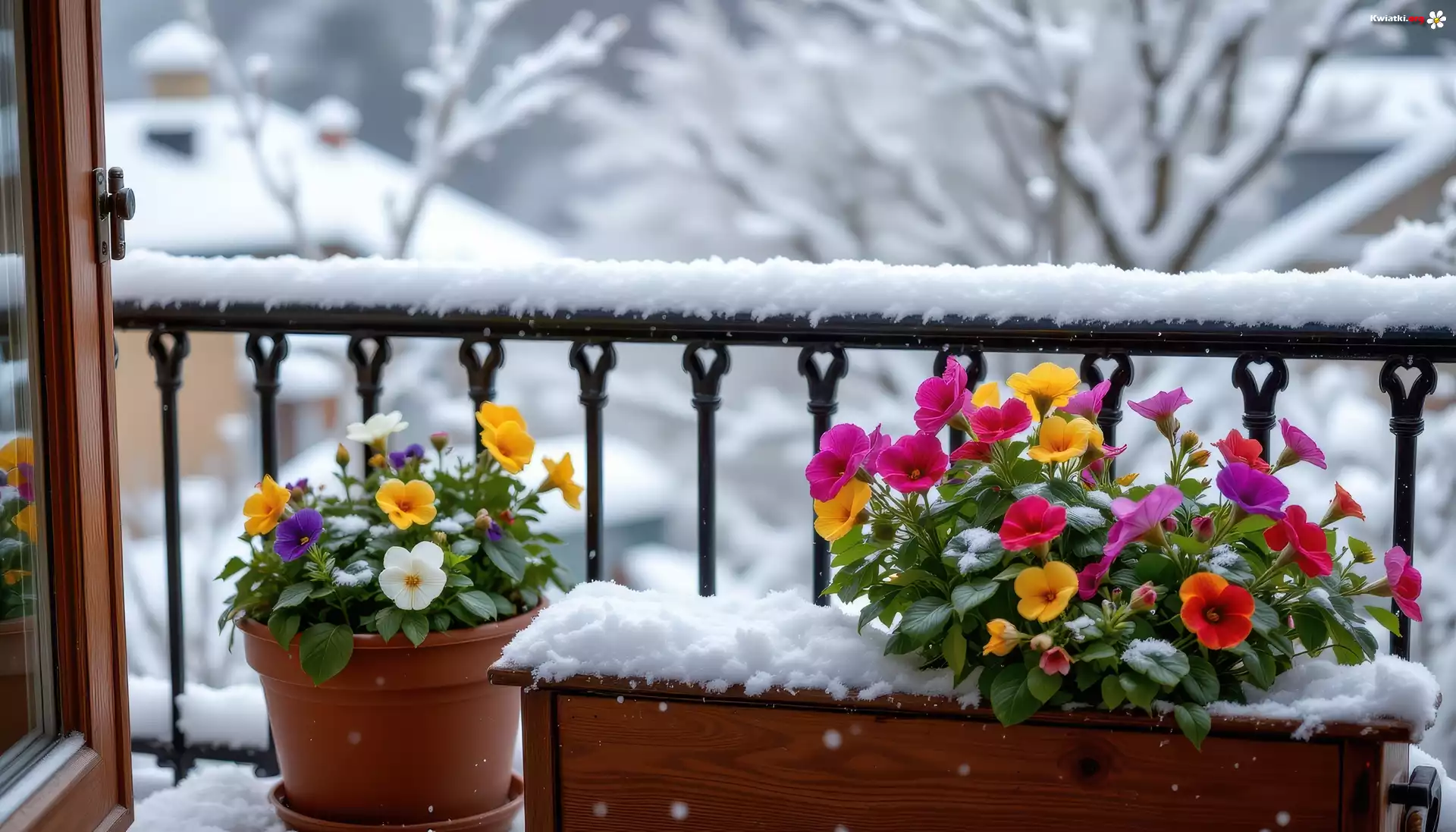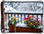 Zima, Kwiaty, Donice, Balkon - Zdjęcia