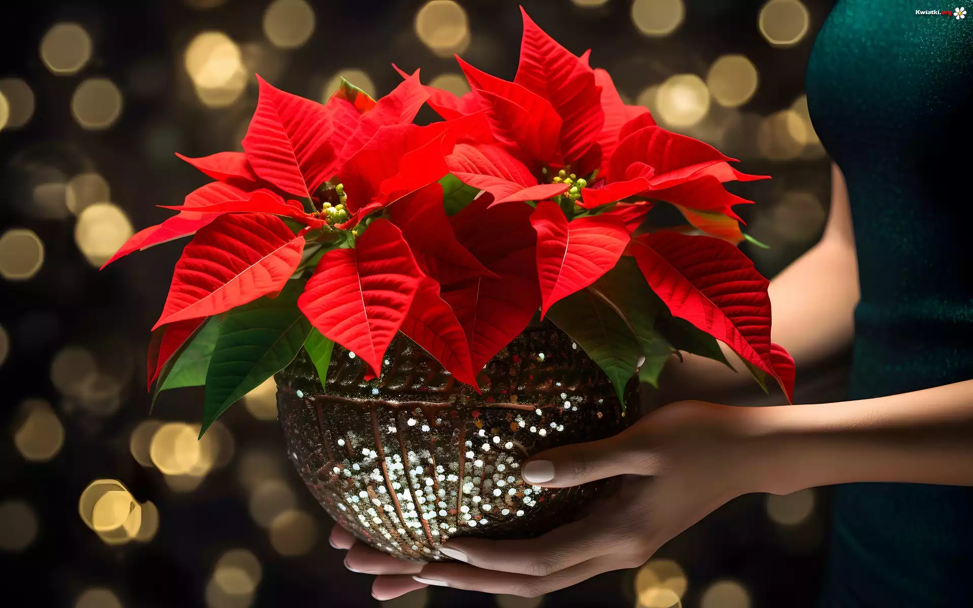 Kwiat Grafika, Kwiat, Gwiazda betlejemska, Dłonie, Doniczka