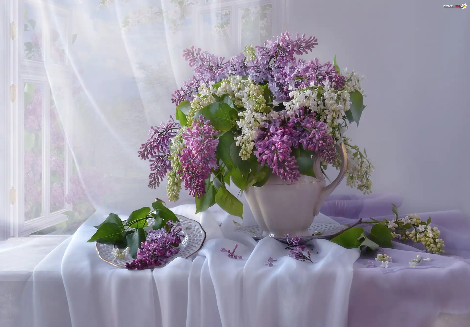 Kwiat Bez, Bukiet, Wazon, Talerzyk, Kompozycja
