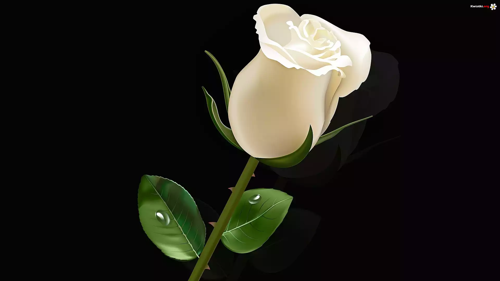 Kwiat, Biała, Róża, Listki, Krople, Czarne, Tło, Grafika - Zdjęcia