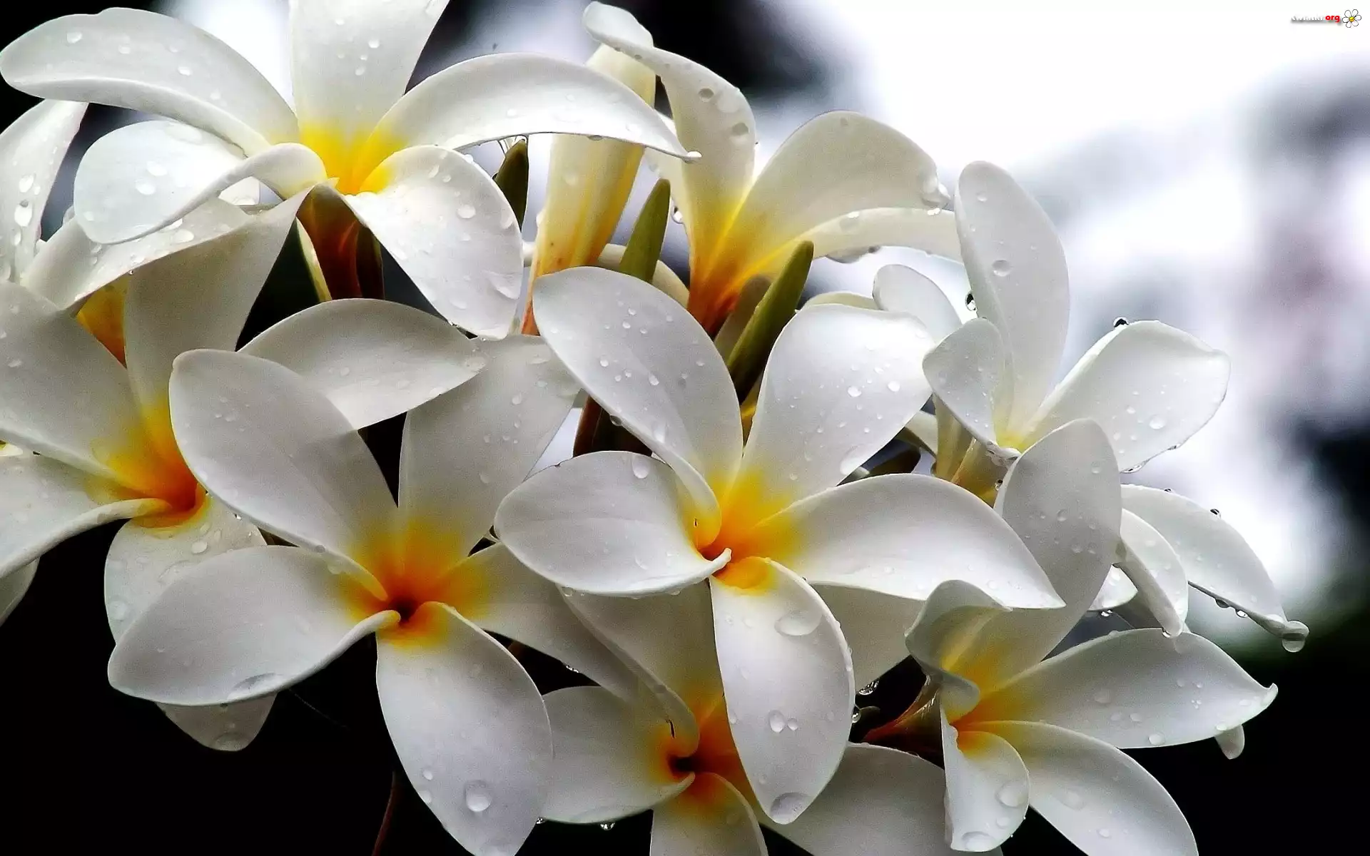 Biała, Plumeria, Krople, Wody - Zdjęcia