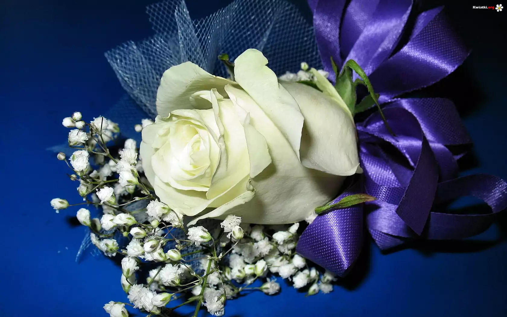 Biała, Róża, Niebieska, Wstążka - Zdjęcia
