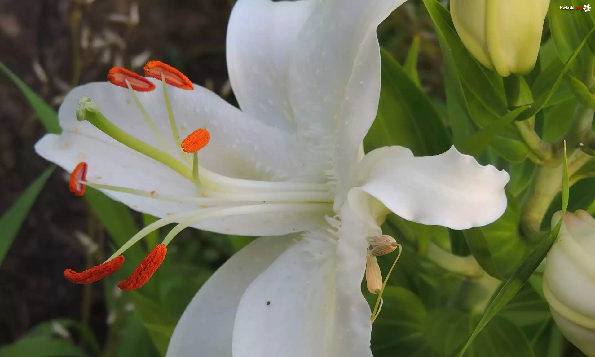 Biała, Lilia, Pąki, Liście - Zdjęcia