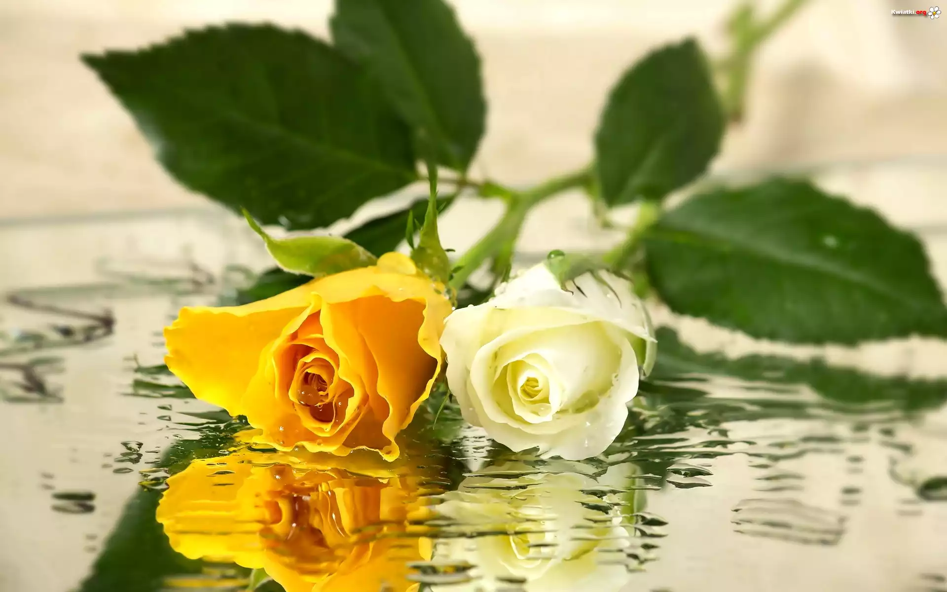 Biała, Żółta, Róża, Woda - Zdjęcia