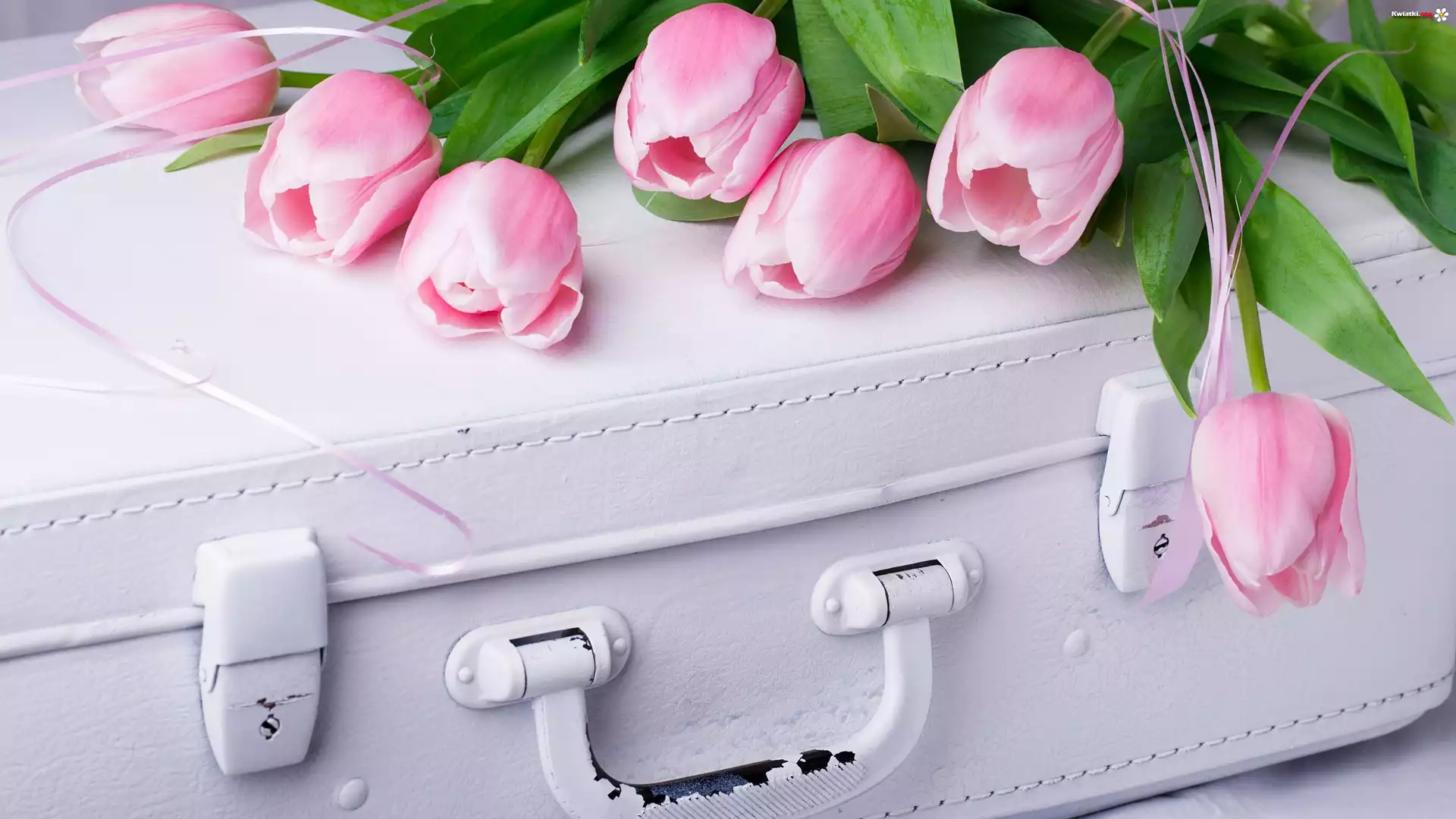 Kwiat Biała, Walizka, Różowe, Tulipany