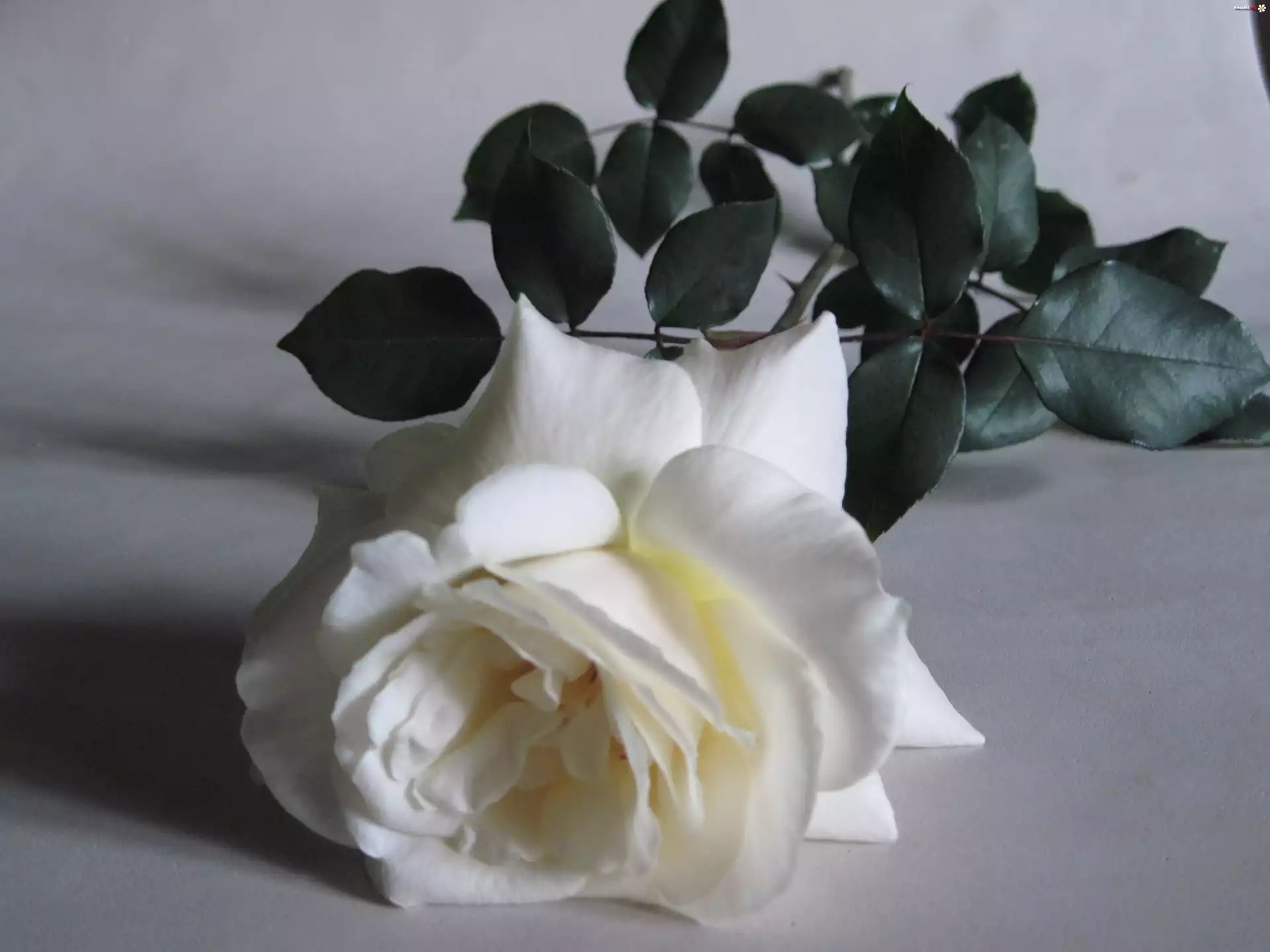 Biała, Róża, Zielone, Listki - Zdjęcia