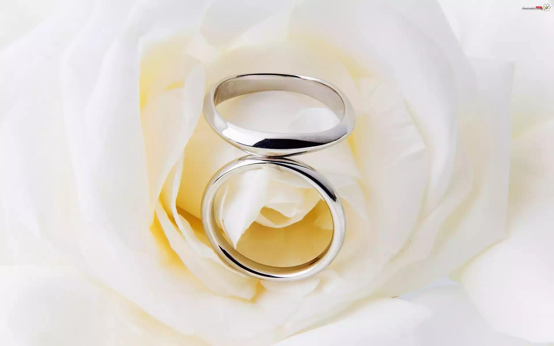Biała, Różyczka, Białe, Złoto, Obrączki - Zdjęcia