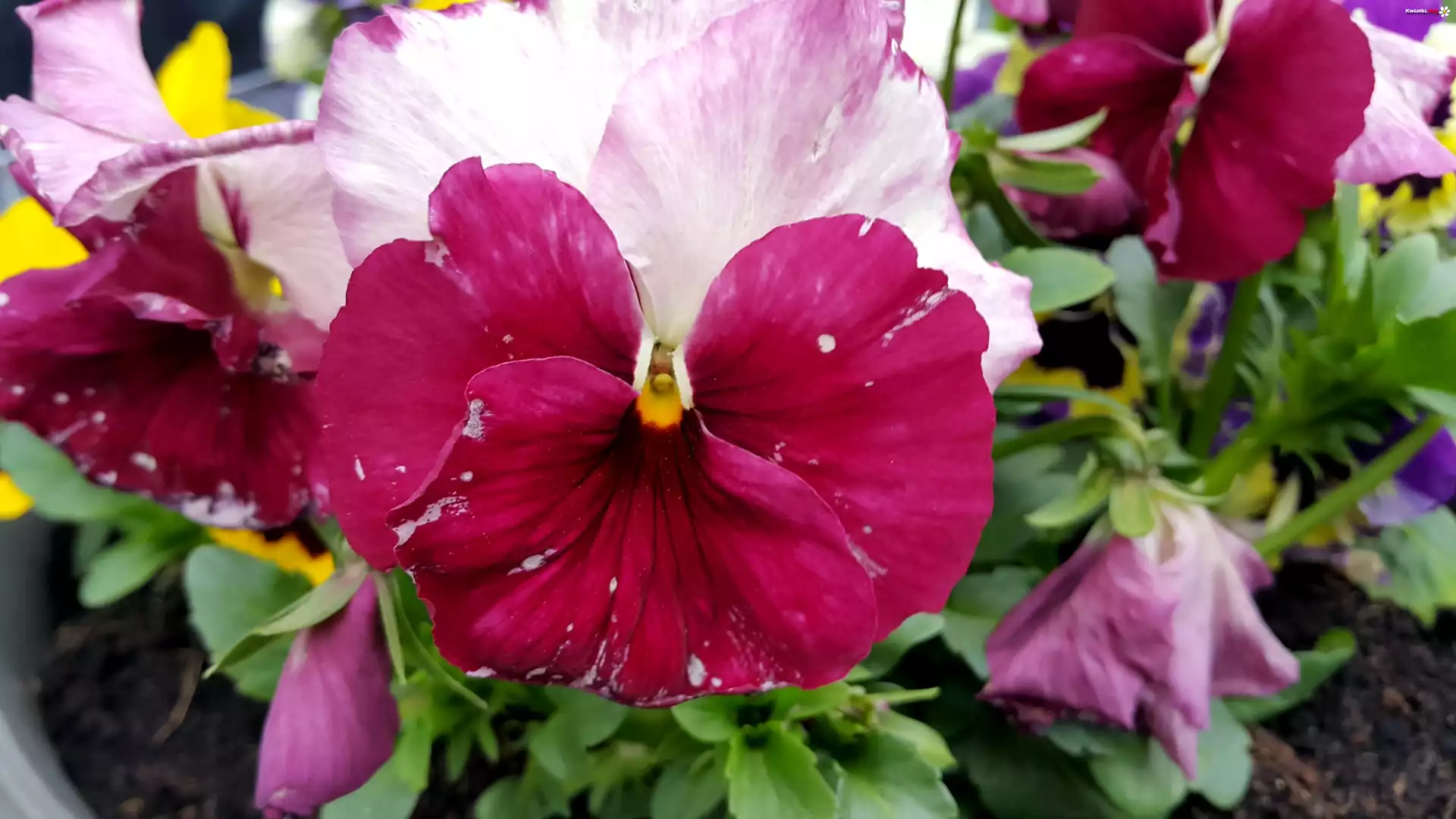 Kwiat Bordowo, Białe, Bratki