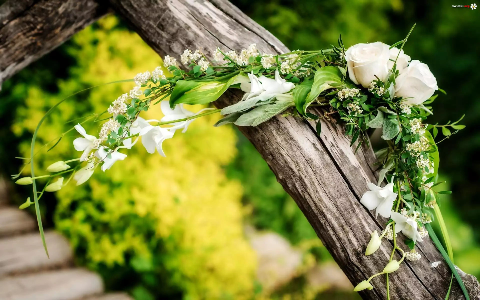 Białe, Róże, Bukiet, Konar - Zdjęcia