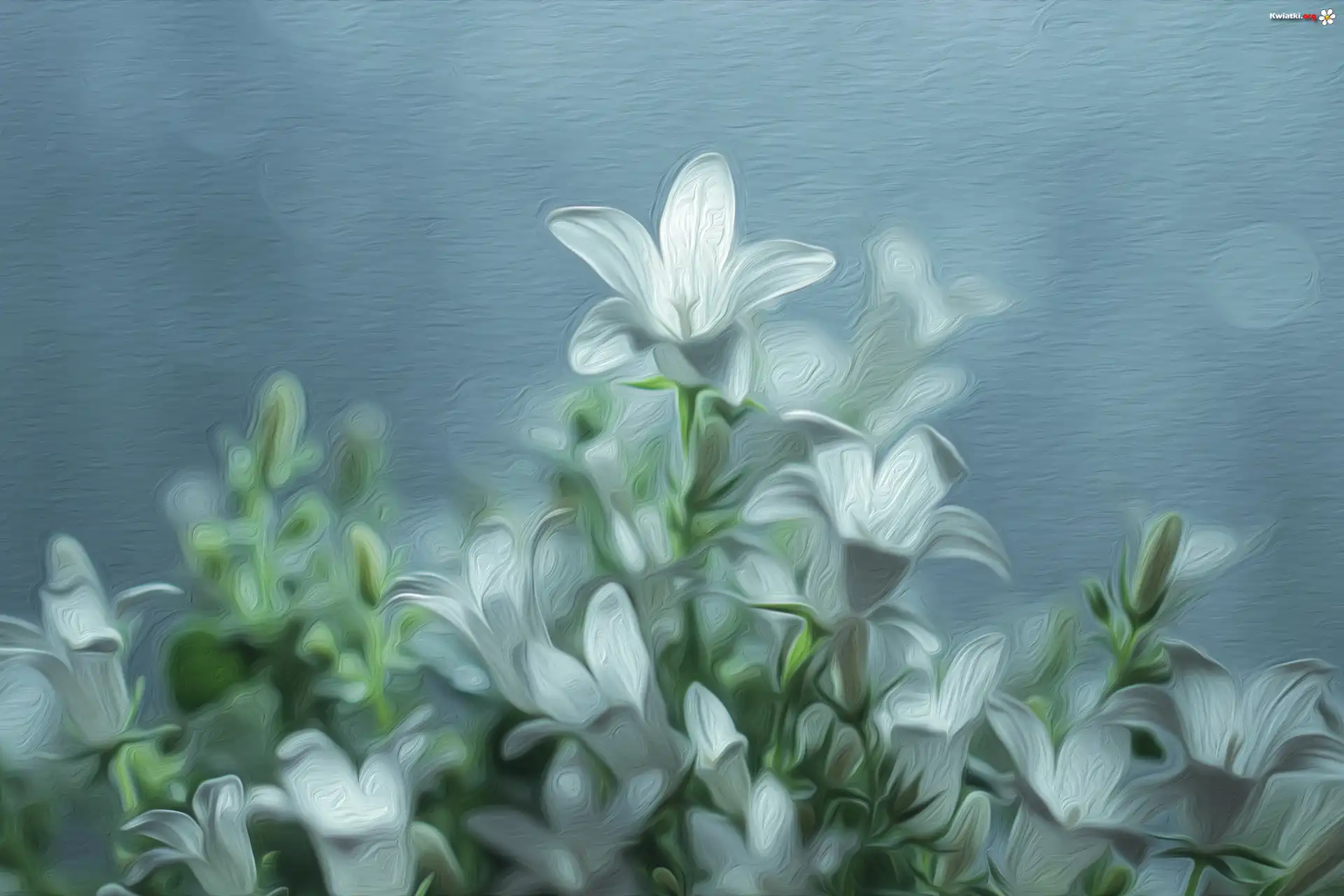 Białe, Dzwonki, Campanula, Grafika - Zdjęcia