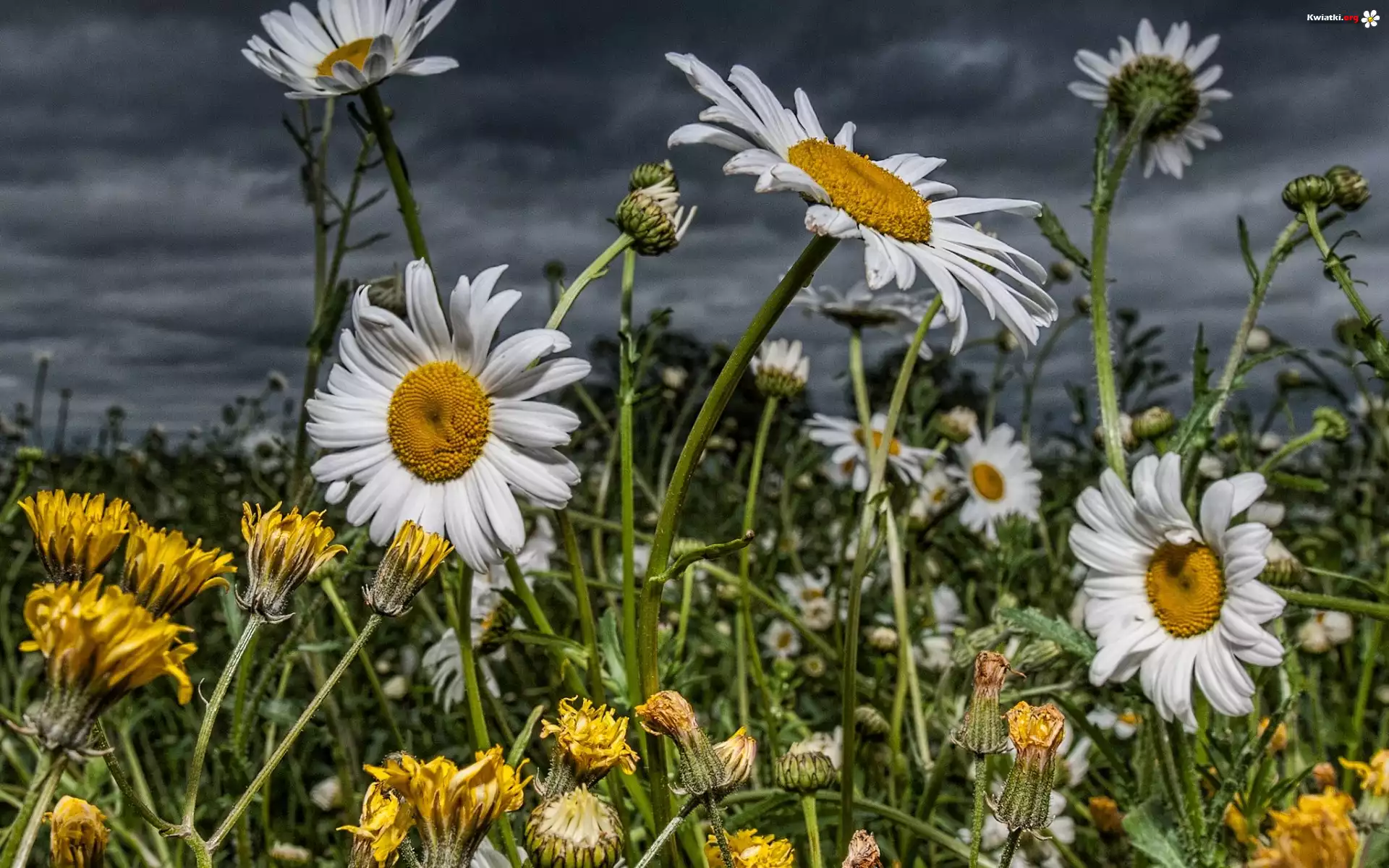 Białe, Kwiatki, Chmury, Łąka - Zdjęcia