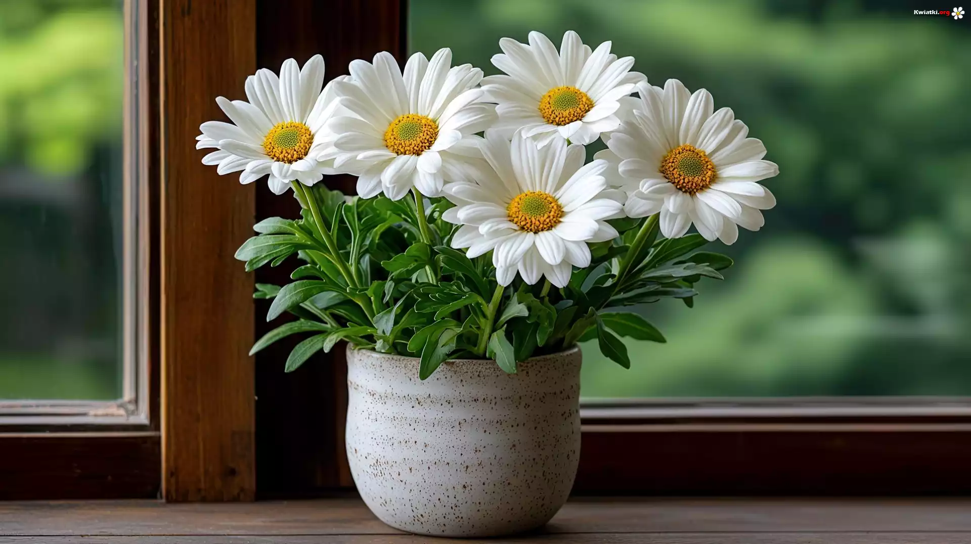 Kwiat Kwiaty, Białe, Doniczka, Parapet, Okno