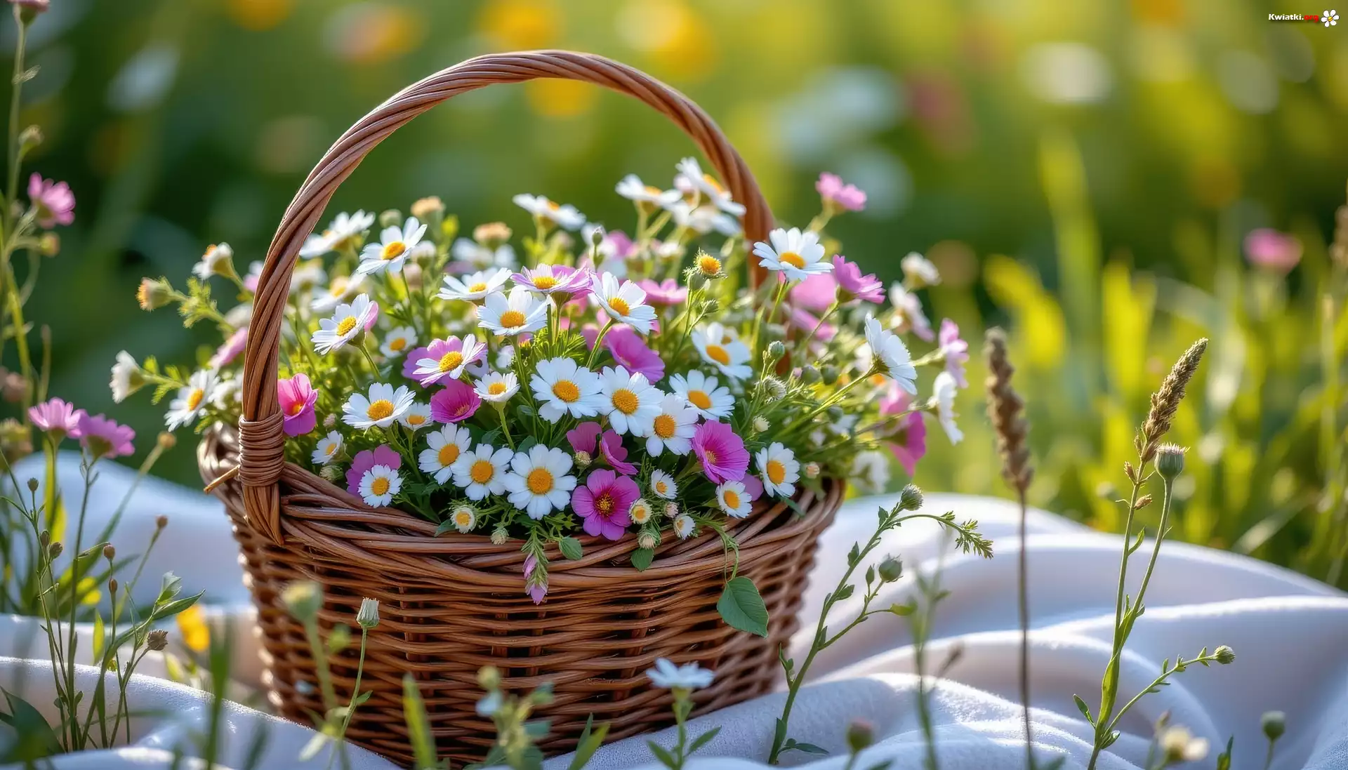 Różowe, Białe, Drobne, Kwiaty, Koszyk - Zdjęcia