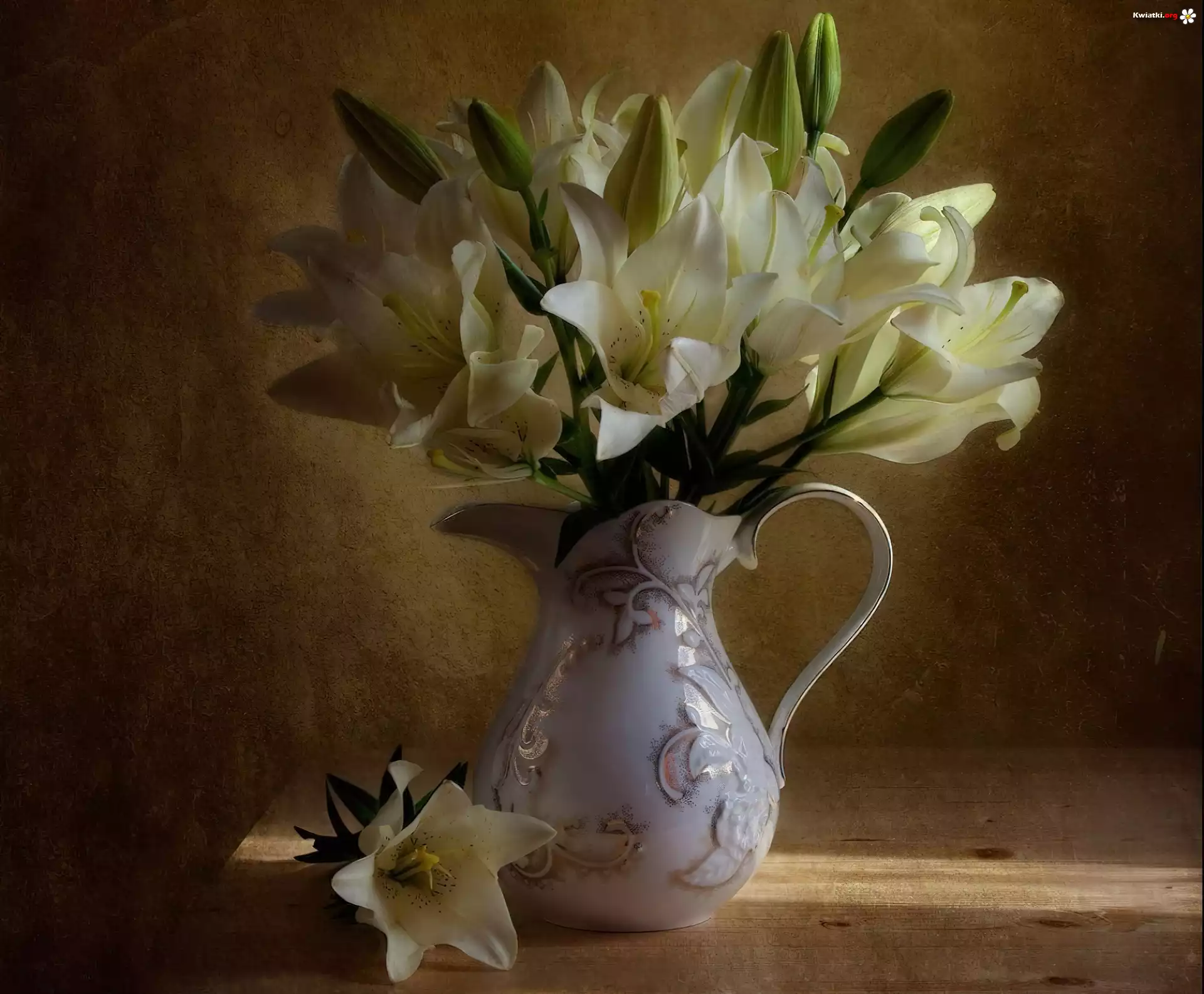 Dzban, Białe, Lilie tygrysie - Zdjęcia