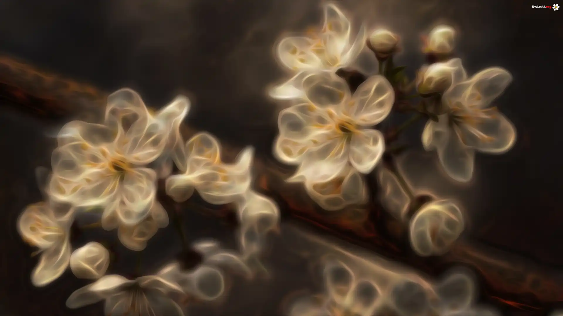 Białe, Kwiaty, Gałązka, Fractalius - Zdjęcia