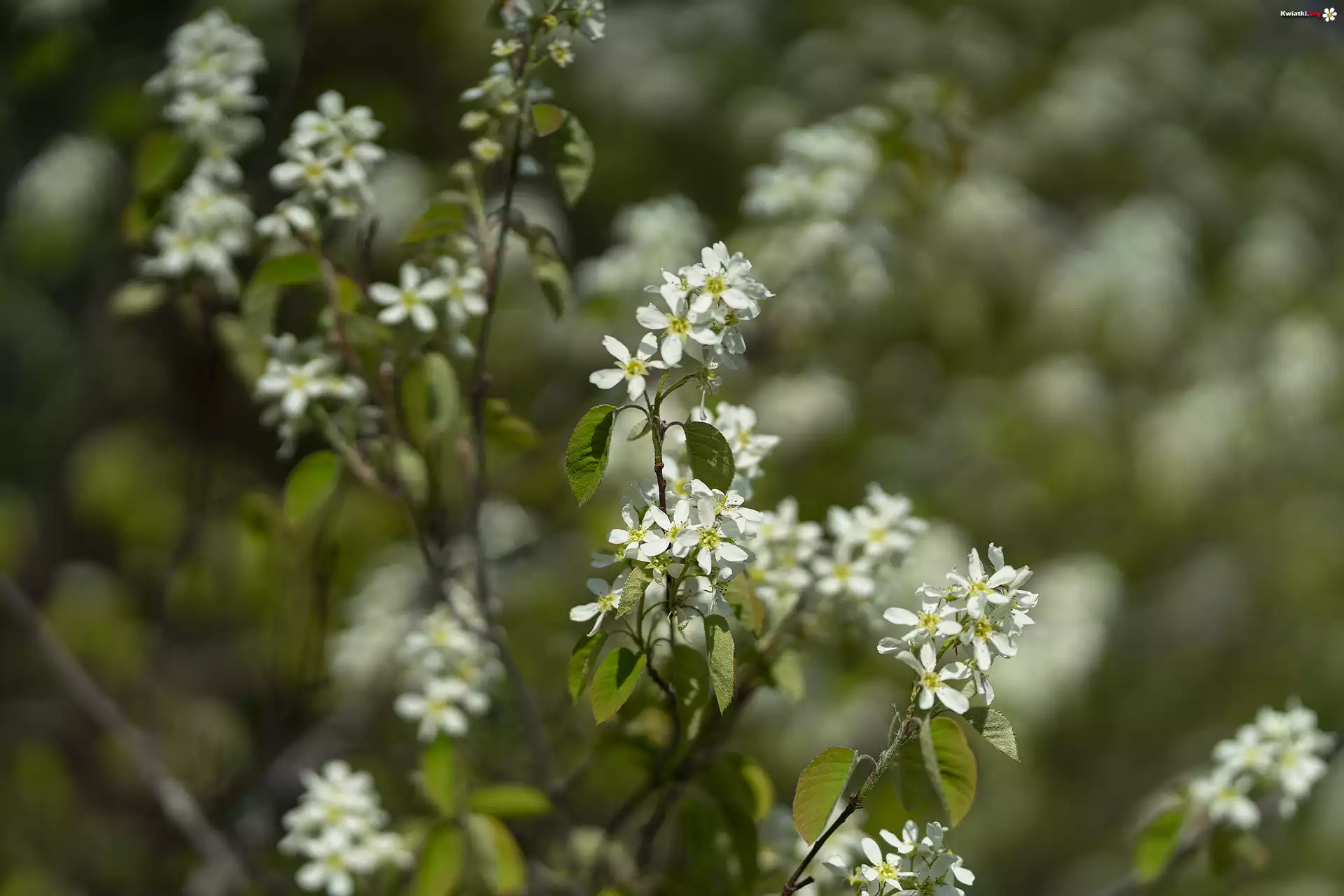 Białe, Kwiaty, Gałązki, Liście - Zdjęcia