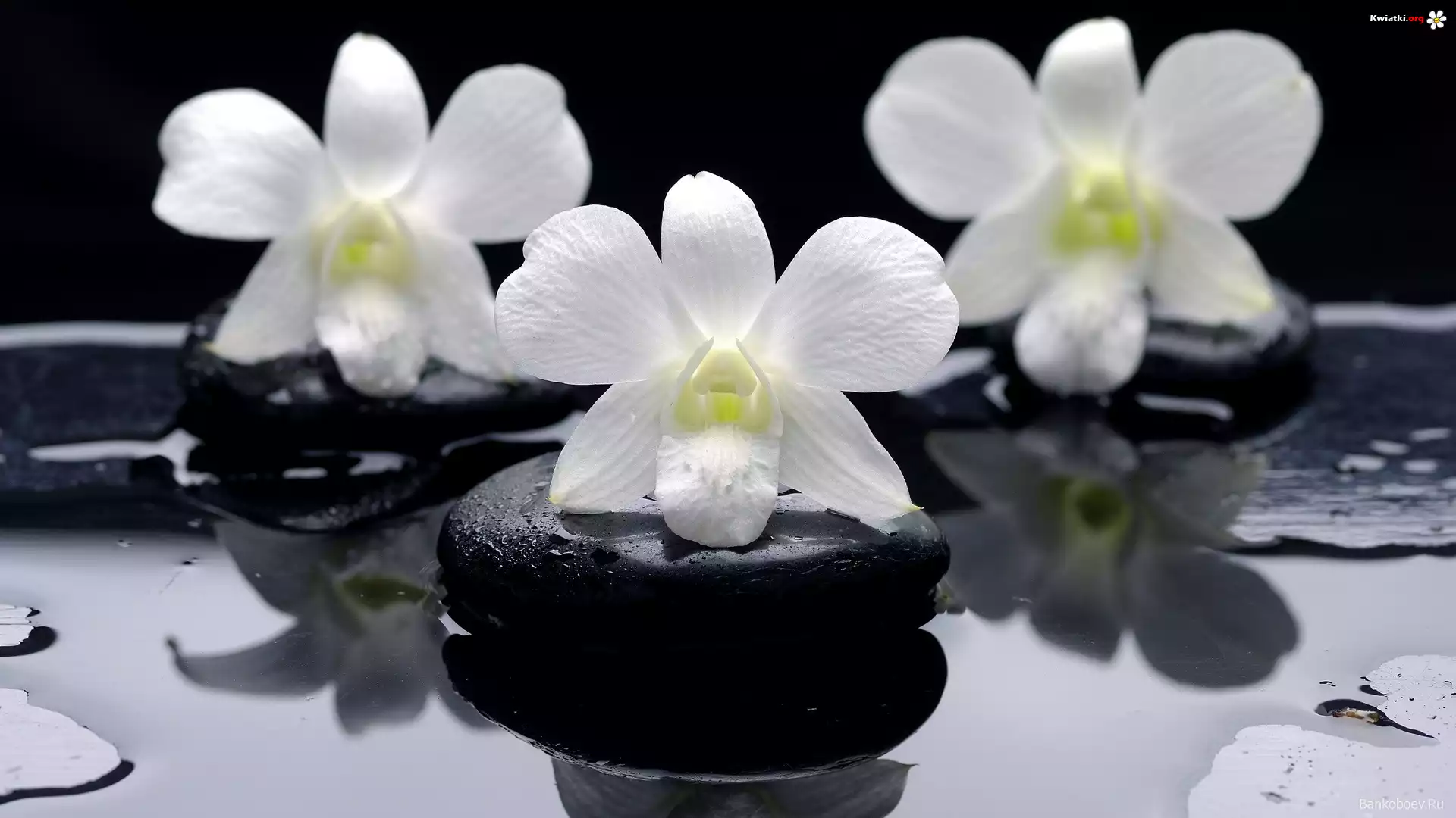 Białe, Storczyki, Kamienie, Strumyk - Zdjęcia