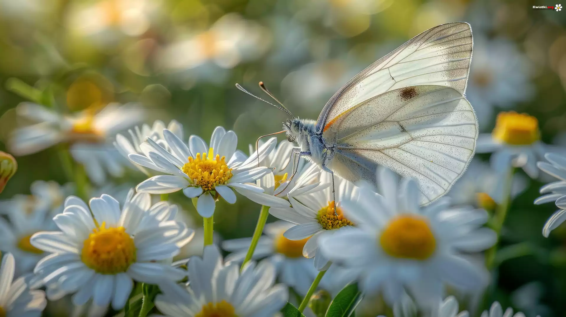 Motyl, Bielinek kapustnik, Białe, Kwiaty, Światło, Grafika - Zdjęcia