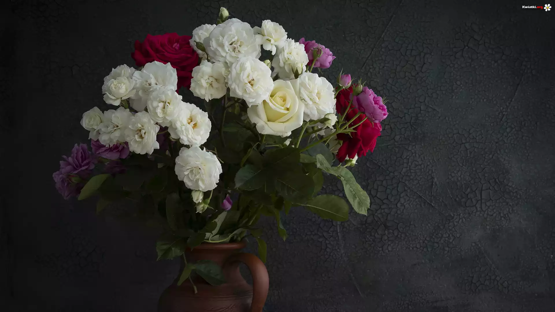Kwiat Kolorowe, Białe, Różowe, Czerwone, Róże, Bukiet, Dzbanek
