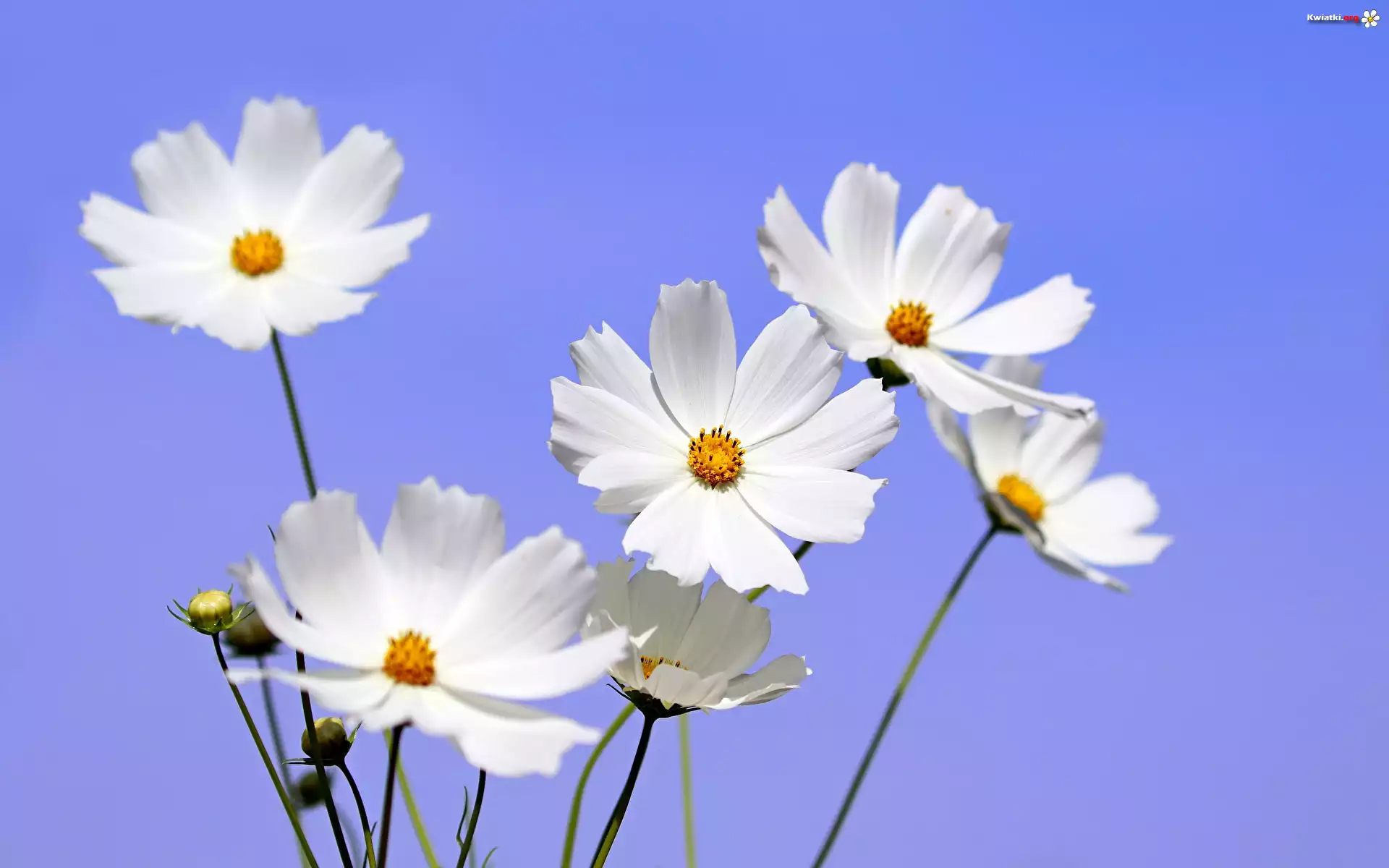 Kwiaty, Pąki, Kosmea, Białe, Bukiet, Tło niebieskie - Zdjęcia
