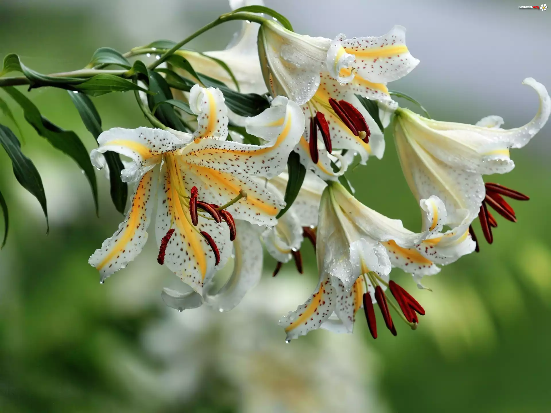 Białe, Lilie, Krople, Wody - Zdjęcia
