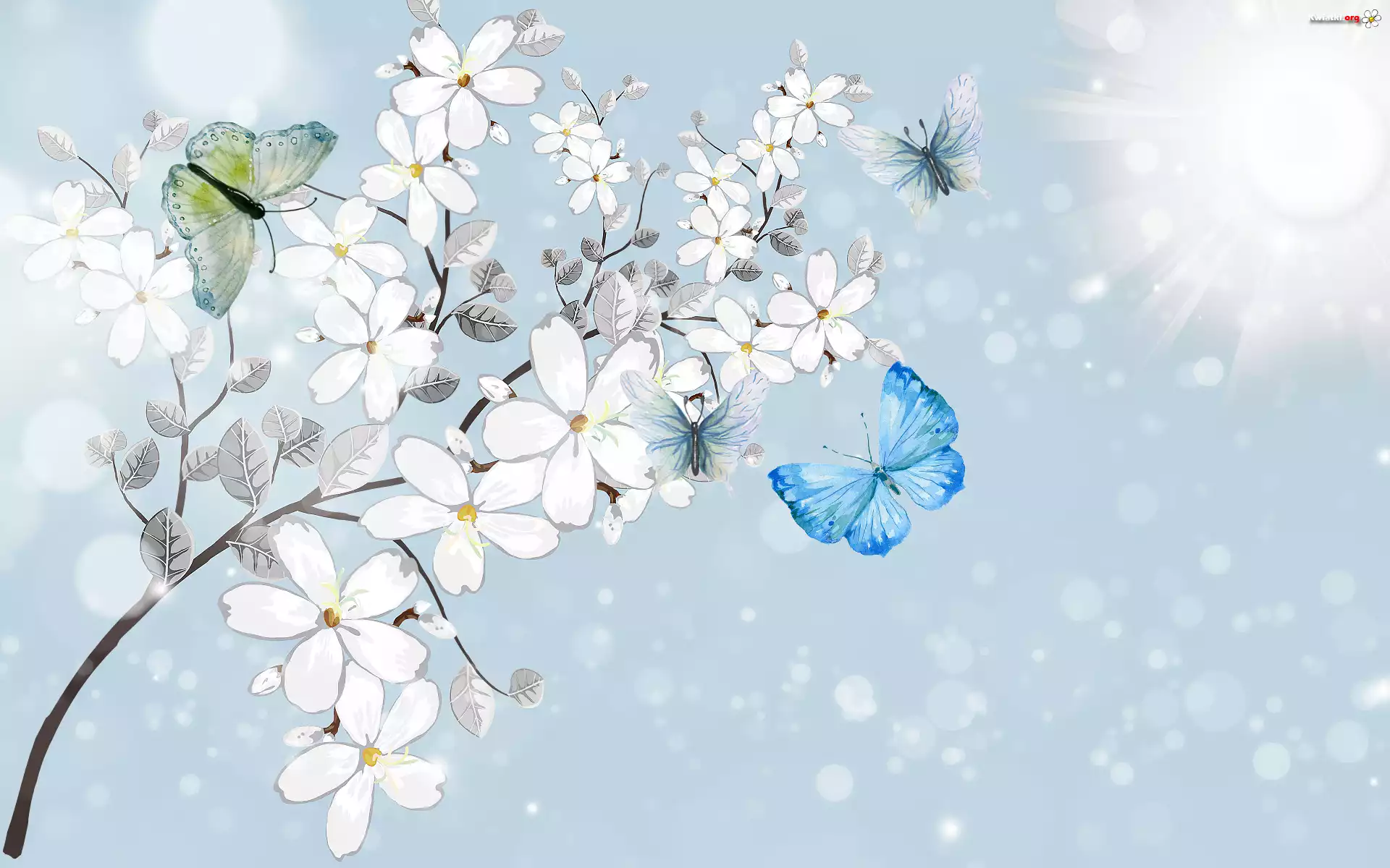 Kwiat Gałązka, Białe, Kwiaty, Motyle, 2D