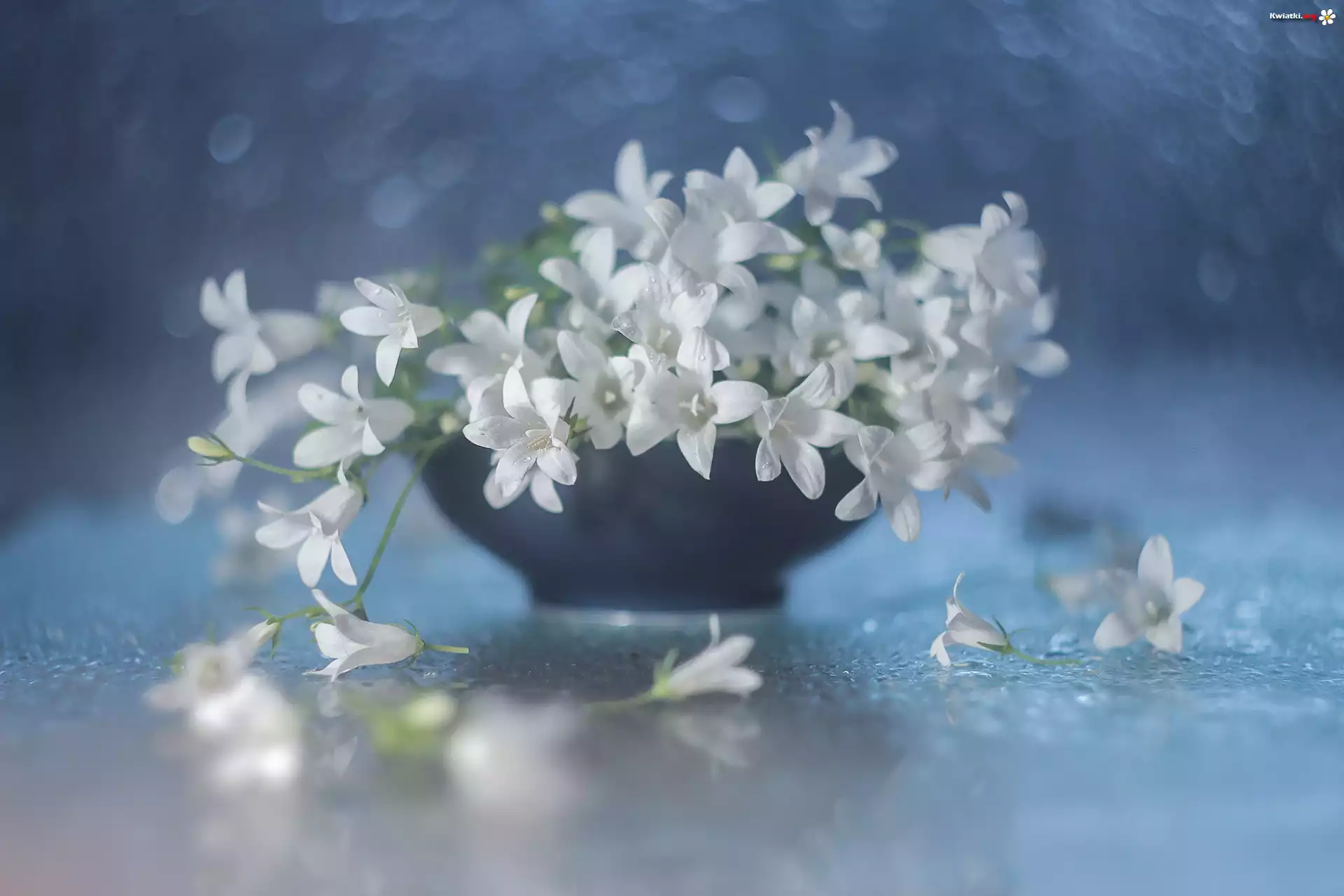 Białe, Dzwonki dalmatyńskie, Kwiaty, Miseczka - Zdjęcia